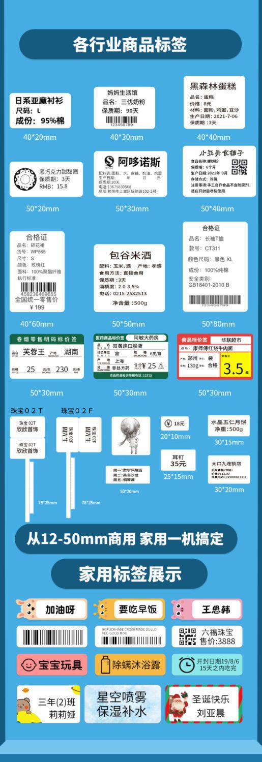 • 바비 파우더 [12-50mm 인쇄 가능]-[유니버설] + 40*30 특수 라벨 용지 5롤