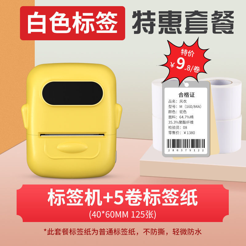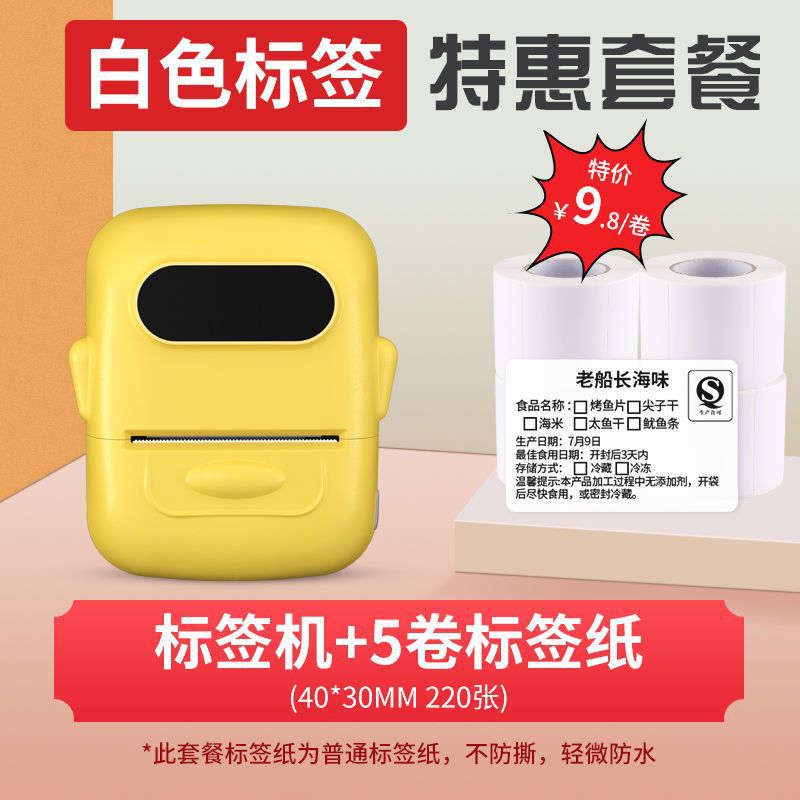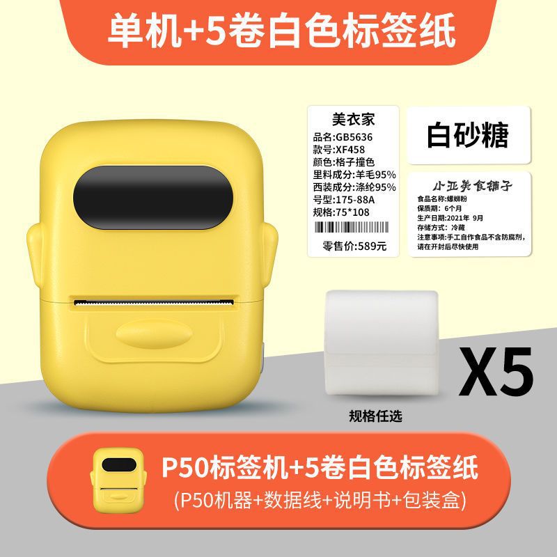 • 크림색 노란색 [12-50mm 인쇄 가능] - 독립형 기계 + 흰색 방수 라벨 5롤