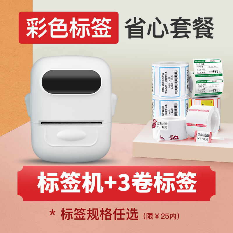 • 바비 파우더 [12-50mm 인쇄 가능] - 독립형 기계 + 흰색 방수 라벨 3롤
