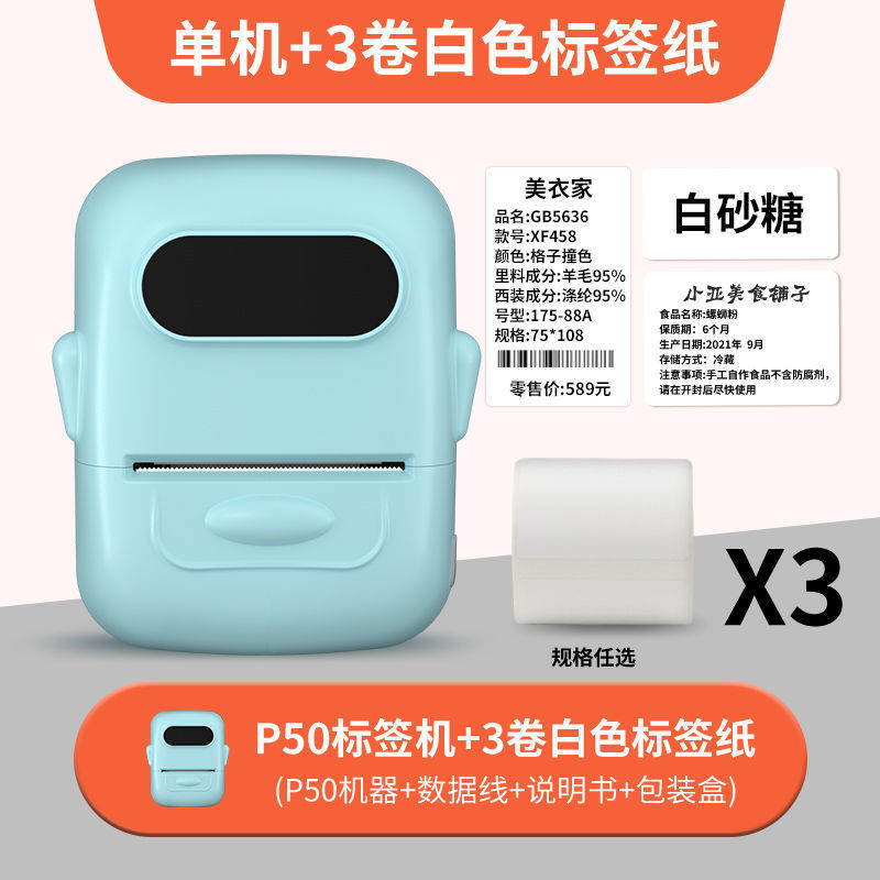 • 흰색 [12-50mm 인쇄 가능] - 독립형 기계 + 흰색 방수 라벨 3롤