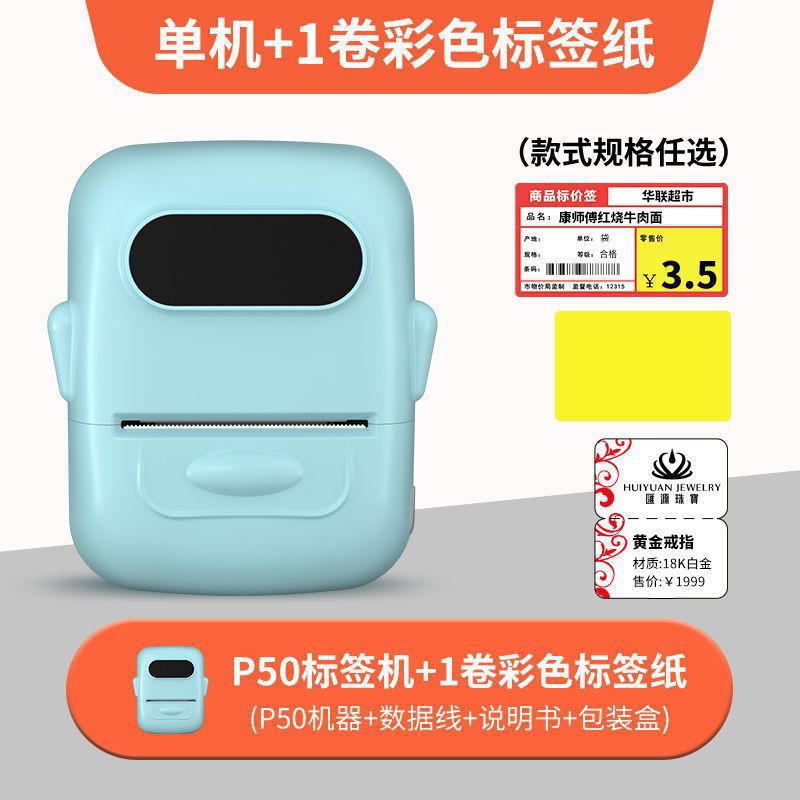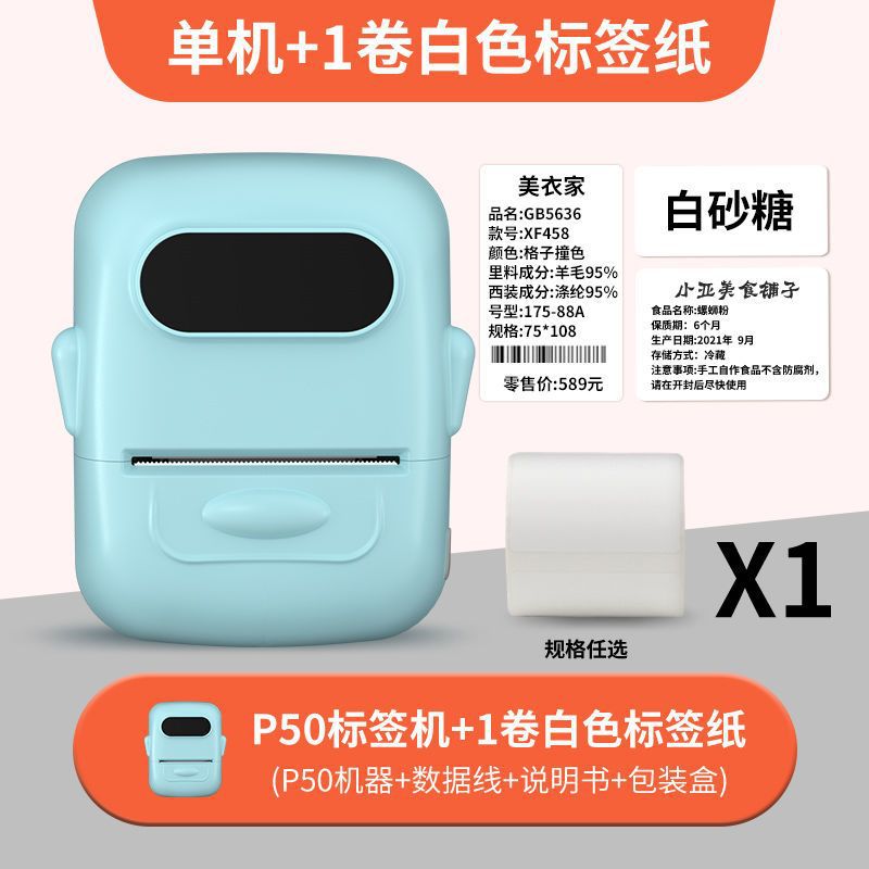 • 청록색 [12-50mm 인쇄 가능] - 독립형 기계 + 흰색 방수 라벨 1롤