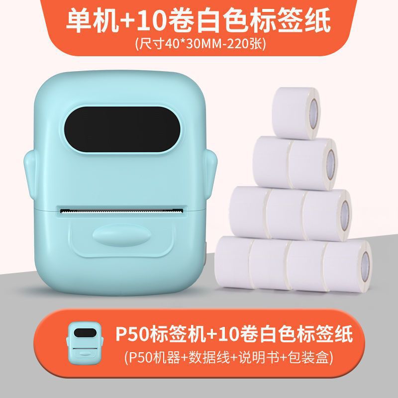 • 청록색 [12-50mm 인쇄 가능] - 독립형 기계 + 흰색 방수 라벨 3롤