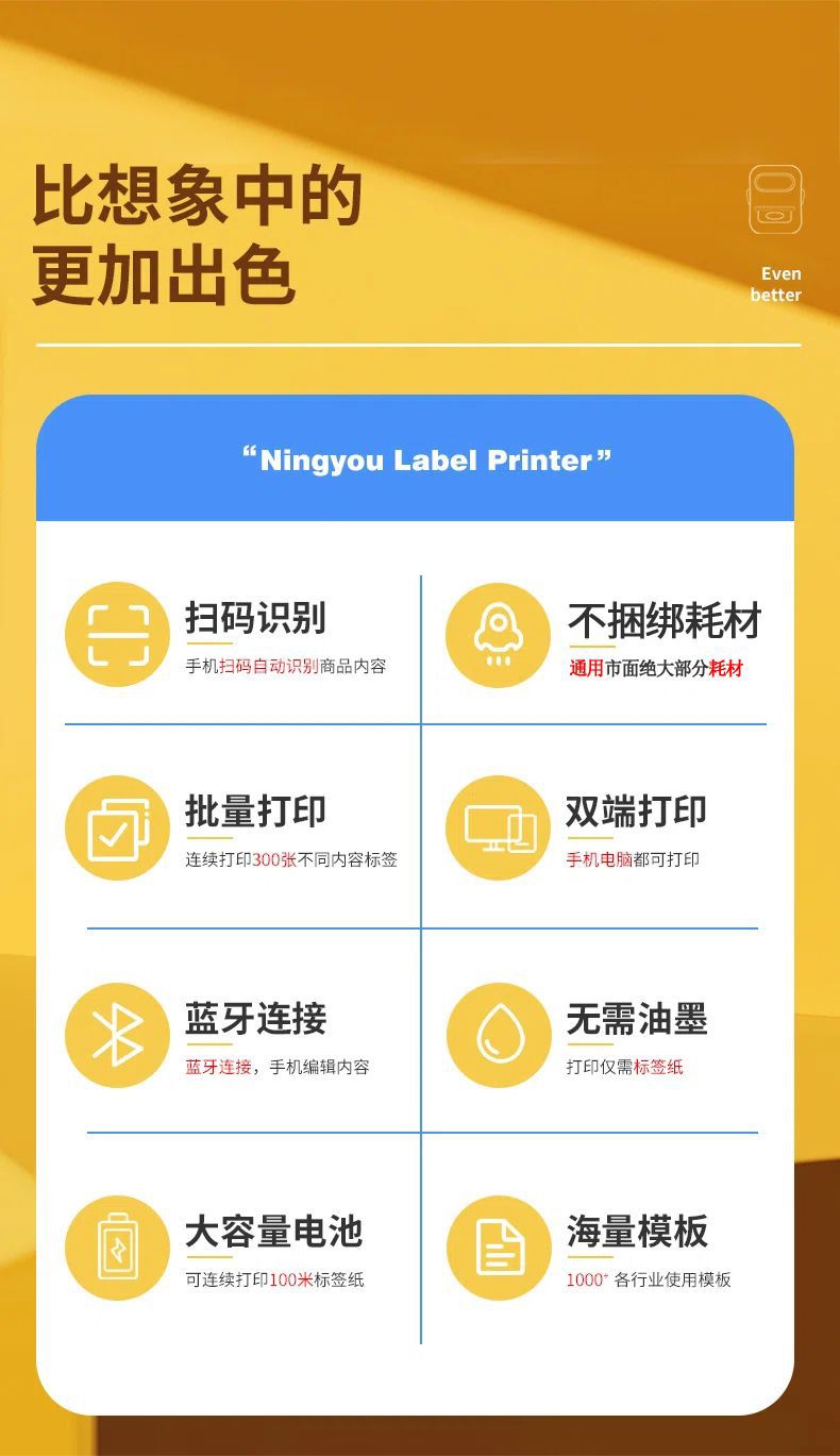 Ningyou 열 블루투스 휴대용 미니 라벨 프린터 의류 쥬얼리 슈퍼마켓 식품 자체 접착 가격 인쇄 기계스토어 가기