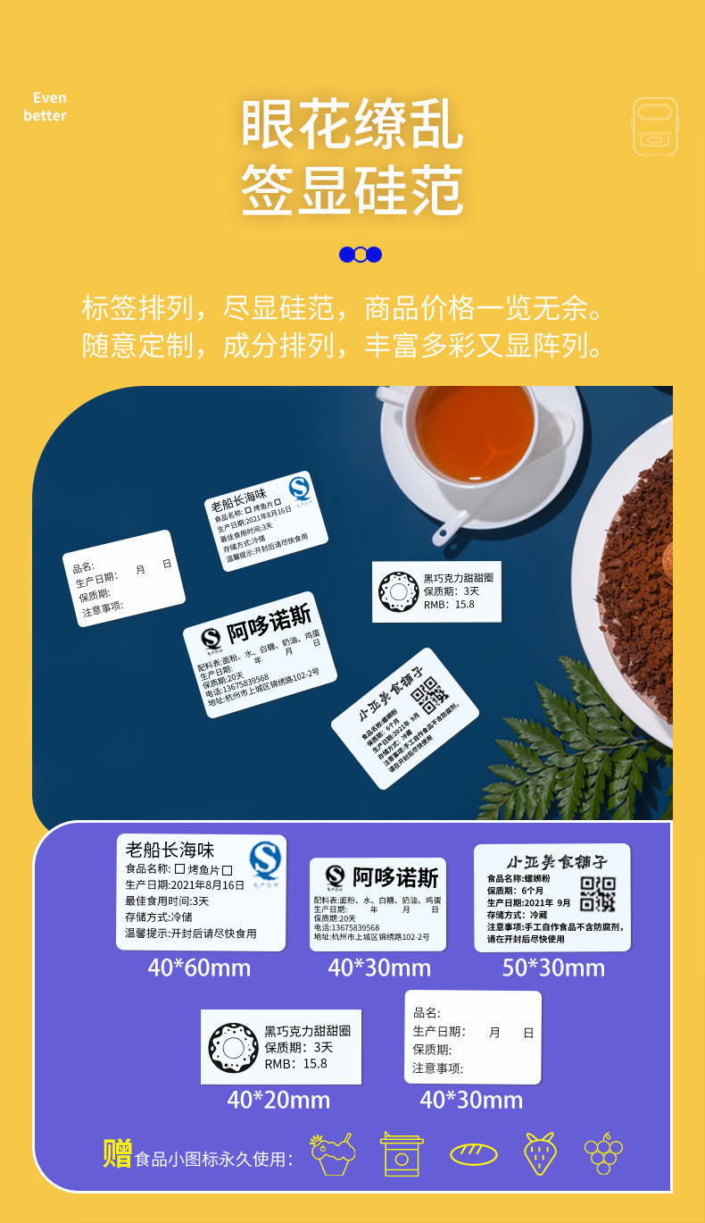 • 크림색 노란색 [12-50mm 인쇄 가능]-[범용] + 특수 라벨 용지 40*30 롤 5개