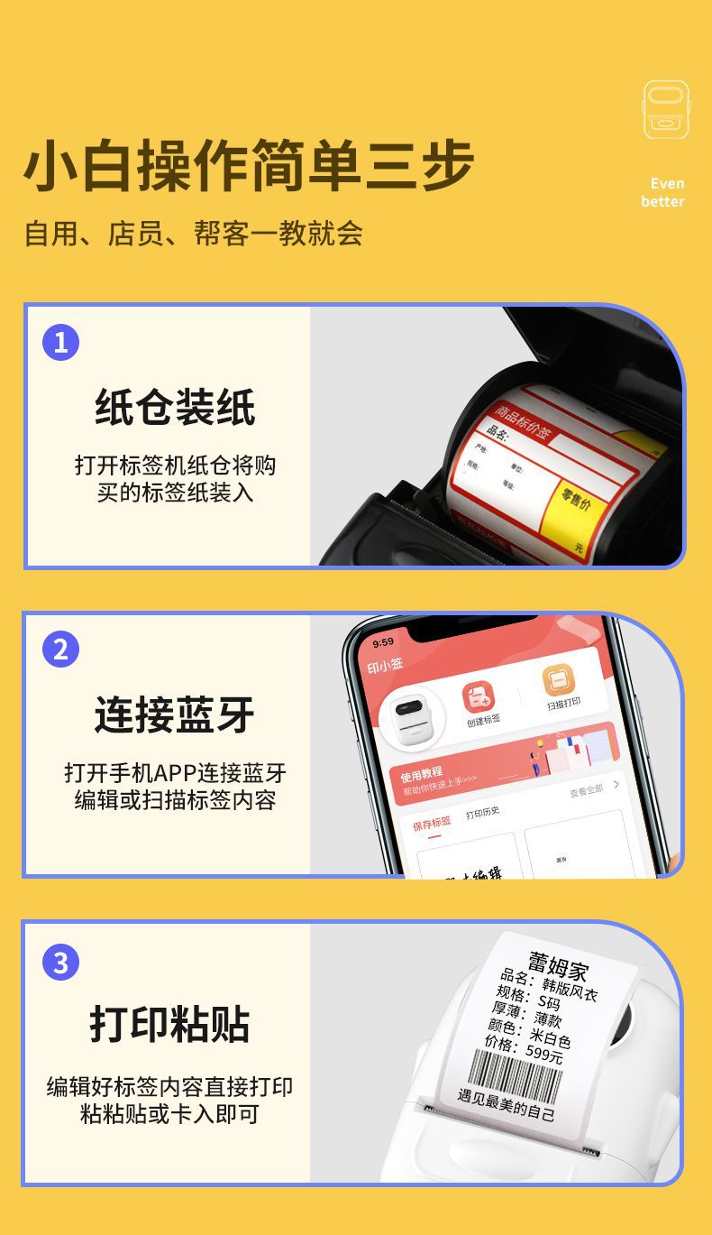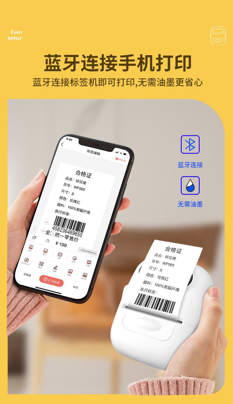 Ningyou 열 블루투스 휴대용 미니 라벨 프린터 의류 쥬얼리 슈퍼마켓 식품 자체 접착 가격 인쇄 기계