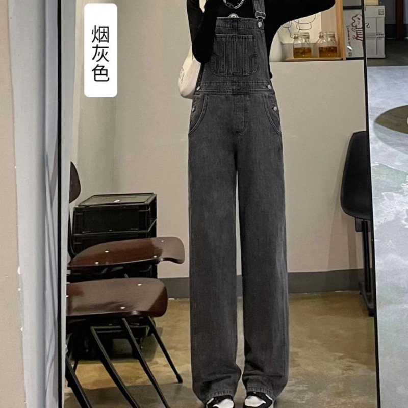봄, 가을 여성을 위한 스모크 그레이 데님 작업복 새로운 스타일의 나이를 줄여주는 뚱뚱한 mm 하이 웨이스트 루즈 슬리밍 와이드 레그 바닥 길이 점프 슈트스토어 가기