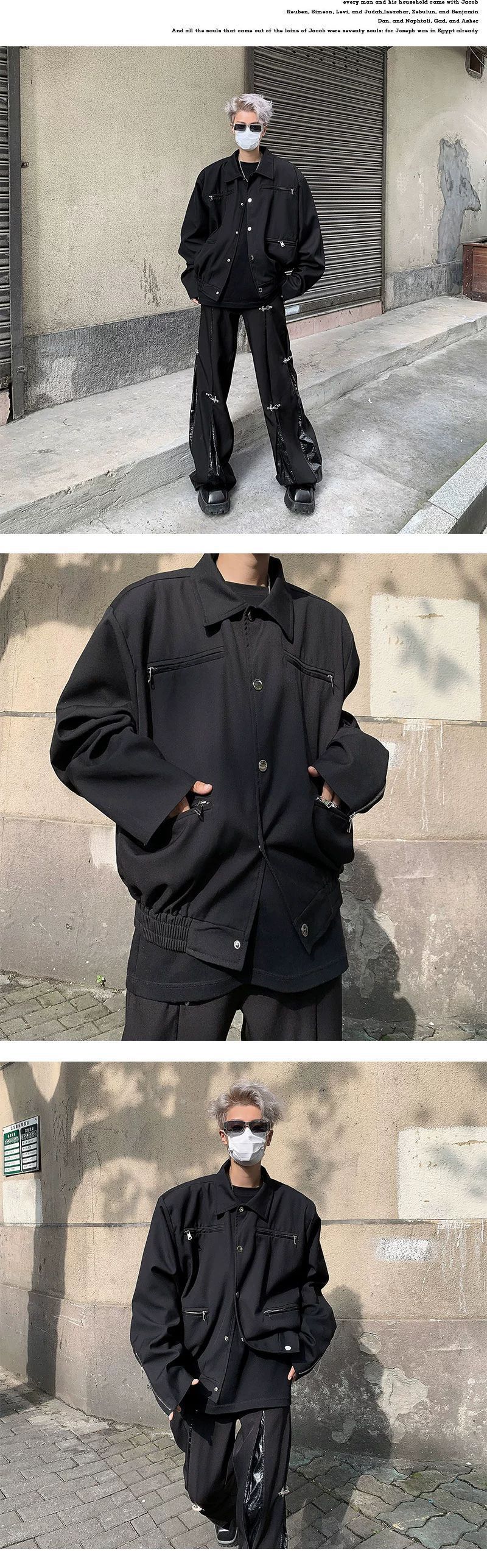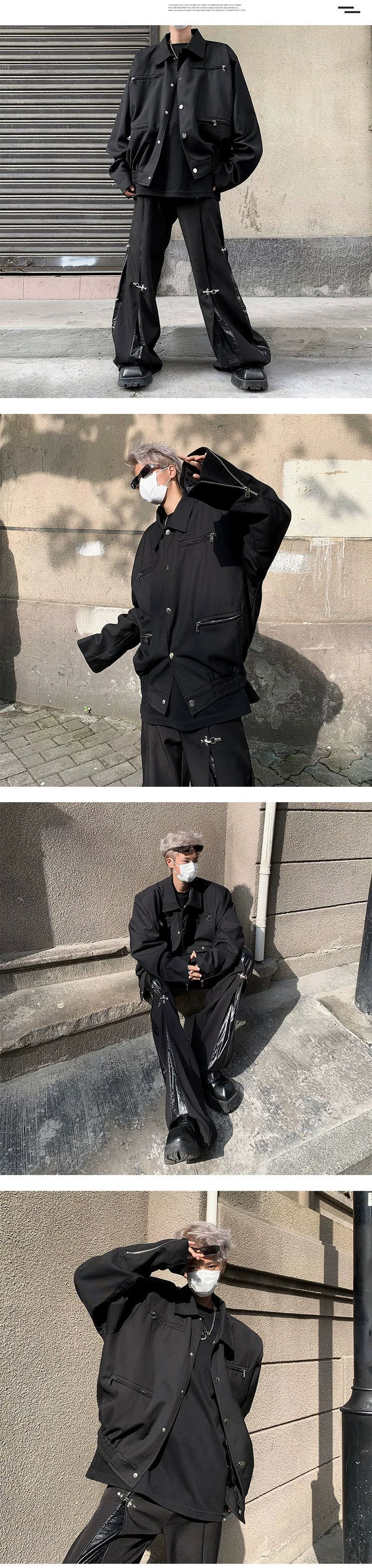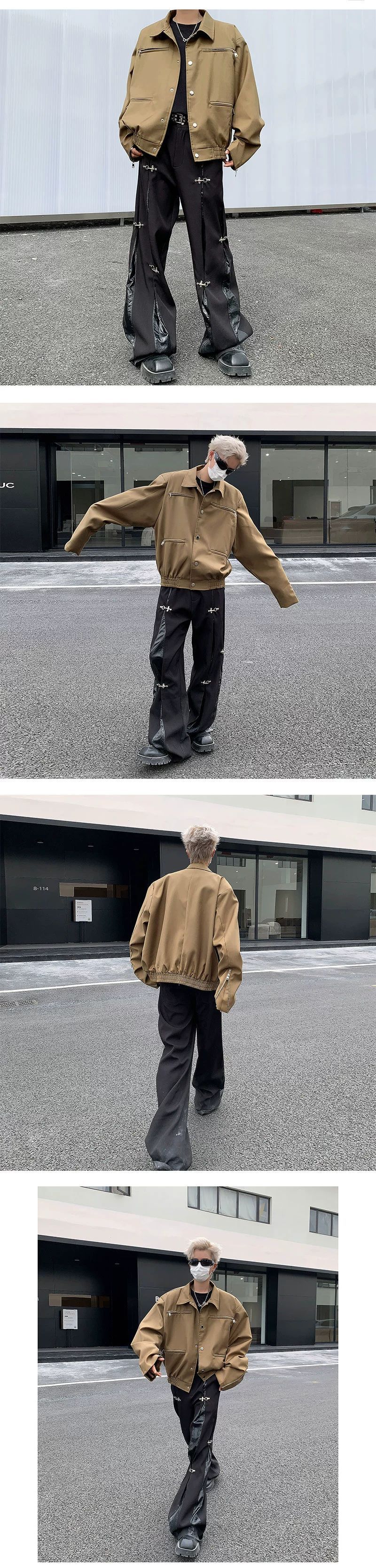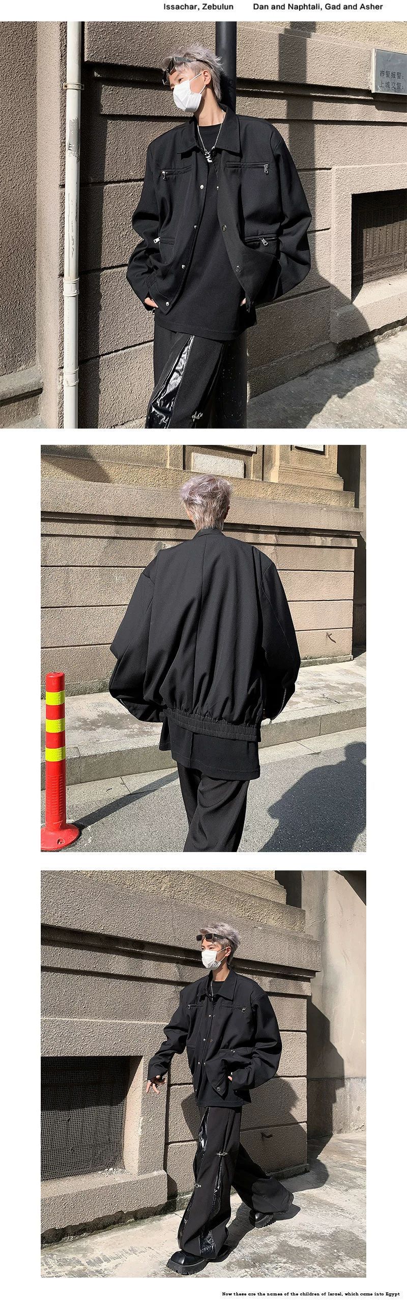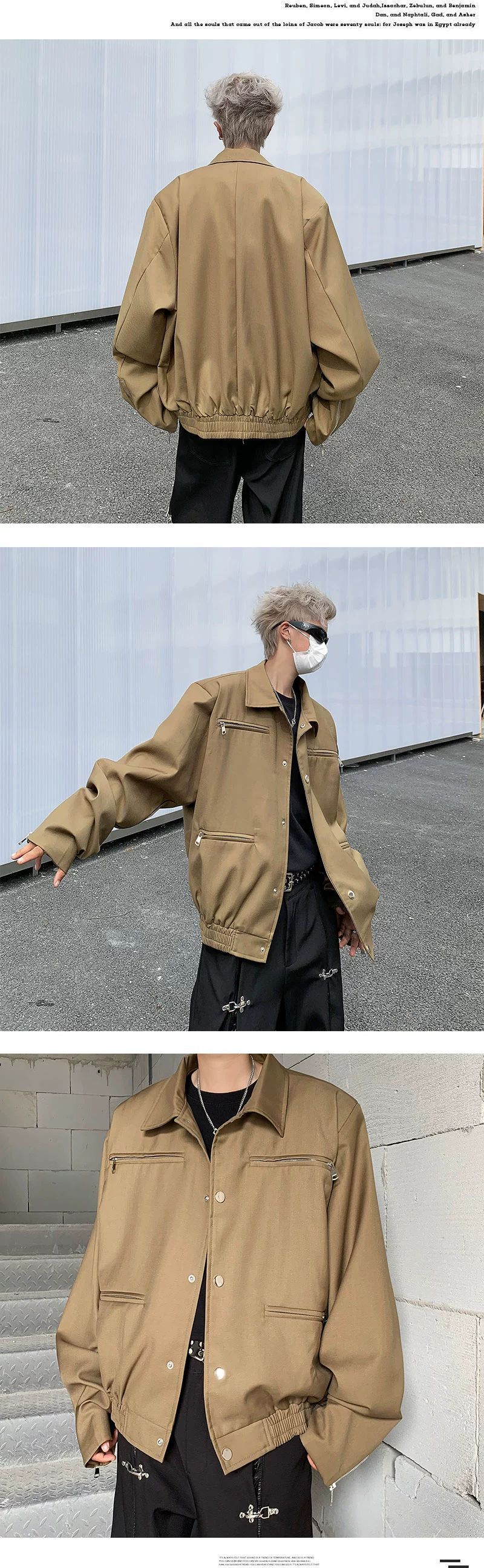 미국식 힙합 옷깃 코트 남성용 2023 년 가을 새로운 틈새 디자인 센스 러피 잘 생긴 폭격기 재킷