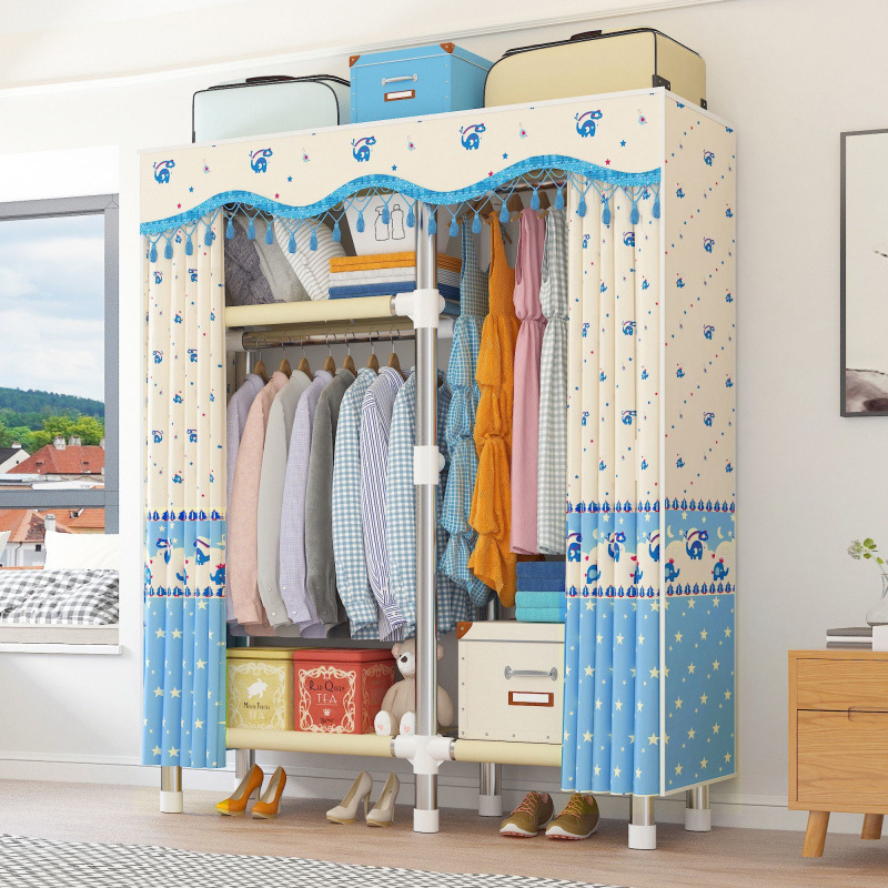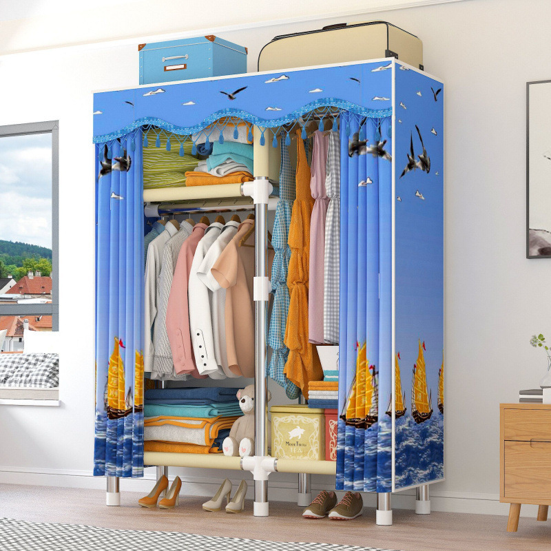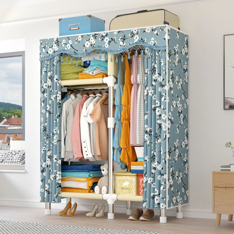옷장 간단한 임대 천 26mm 강철 파이프 두껍고 강화된 가정용 침실 경제적이고 실용적인 수납 캐비닛 독립 스테이션스토어 가기
