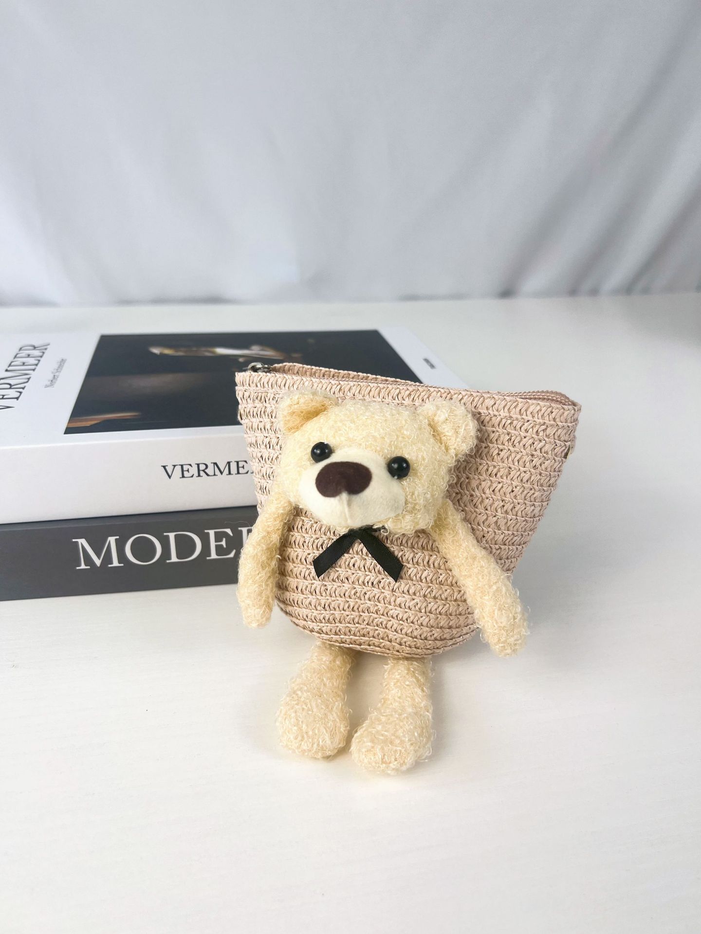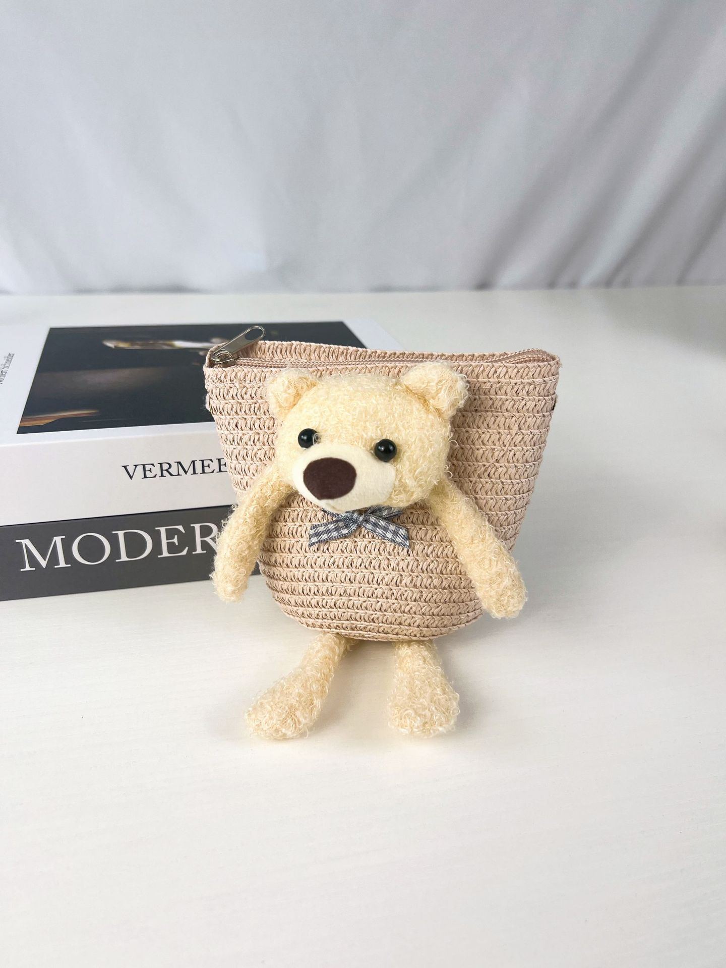 아기 밀짚 작은 가방 어린이 다목적 여름 새로운 만화 곰 대각선 동전 지갑 비치 가방 보관