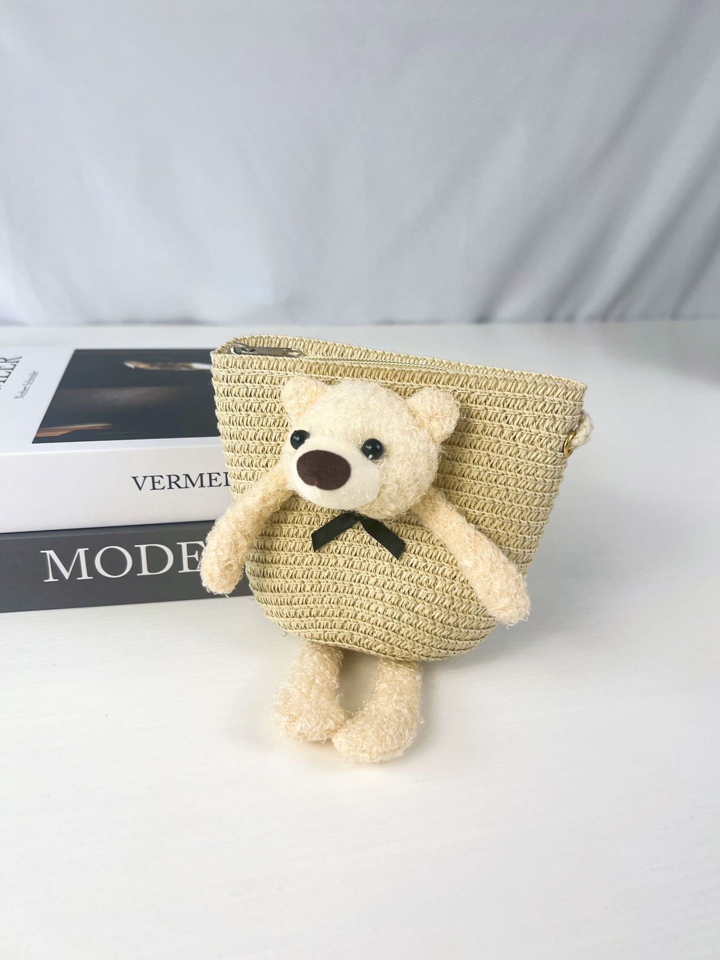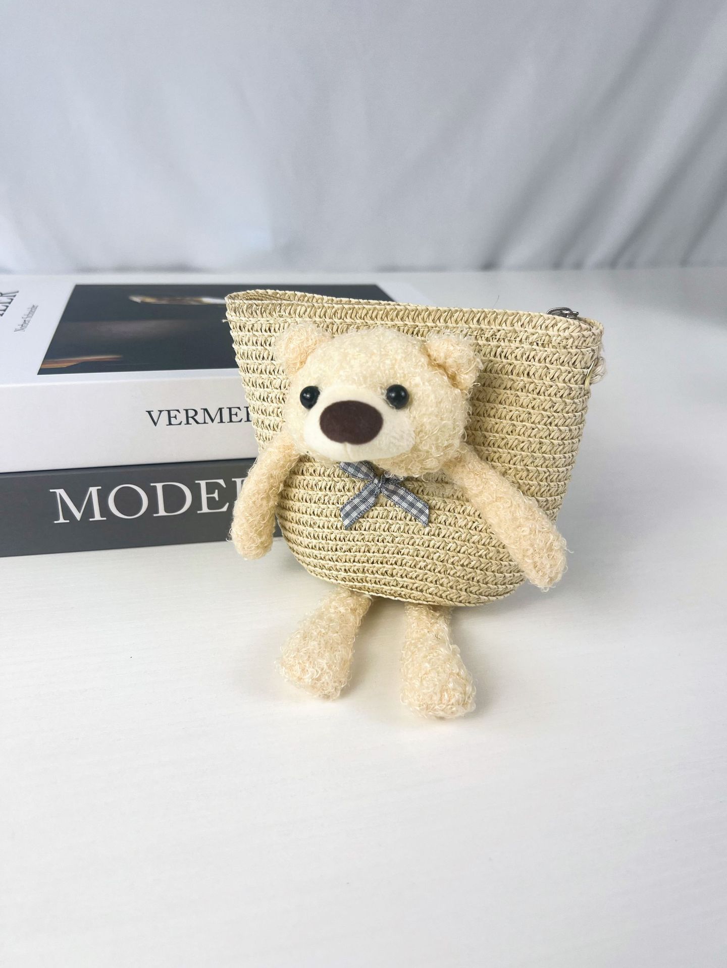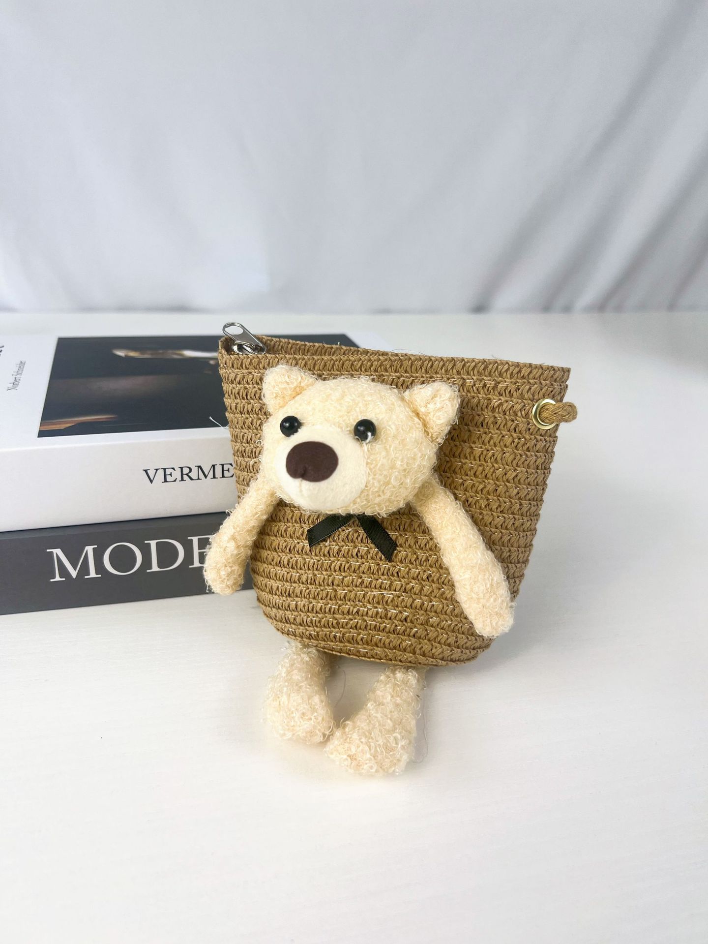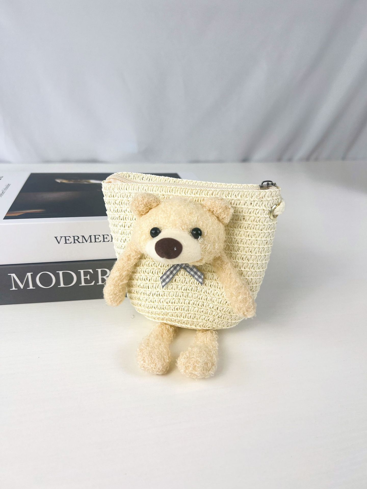 아기 밀짚 작은 가방 어린이 다목적 여름 새로운 만화 곰 대각선 동전 지갑 비치 가방 보관스토어 가기