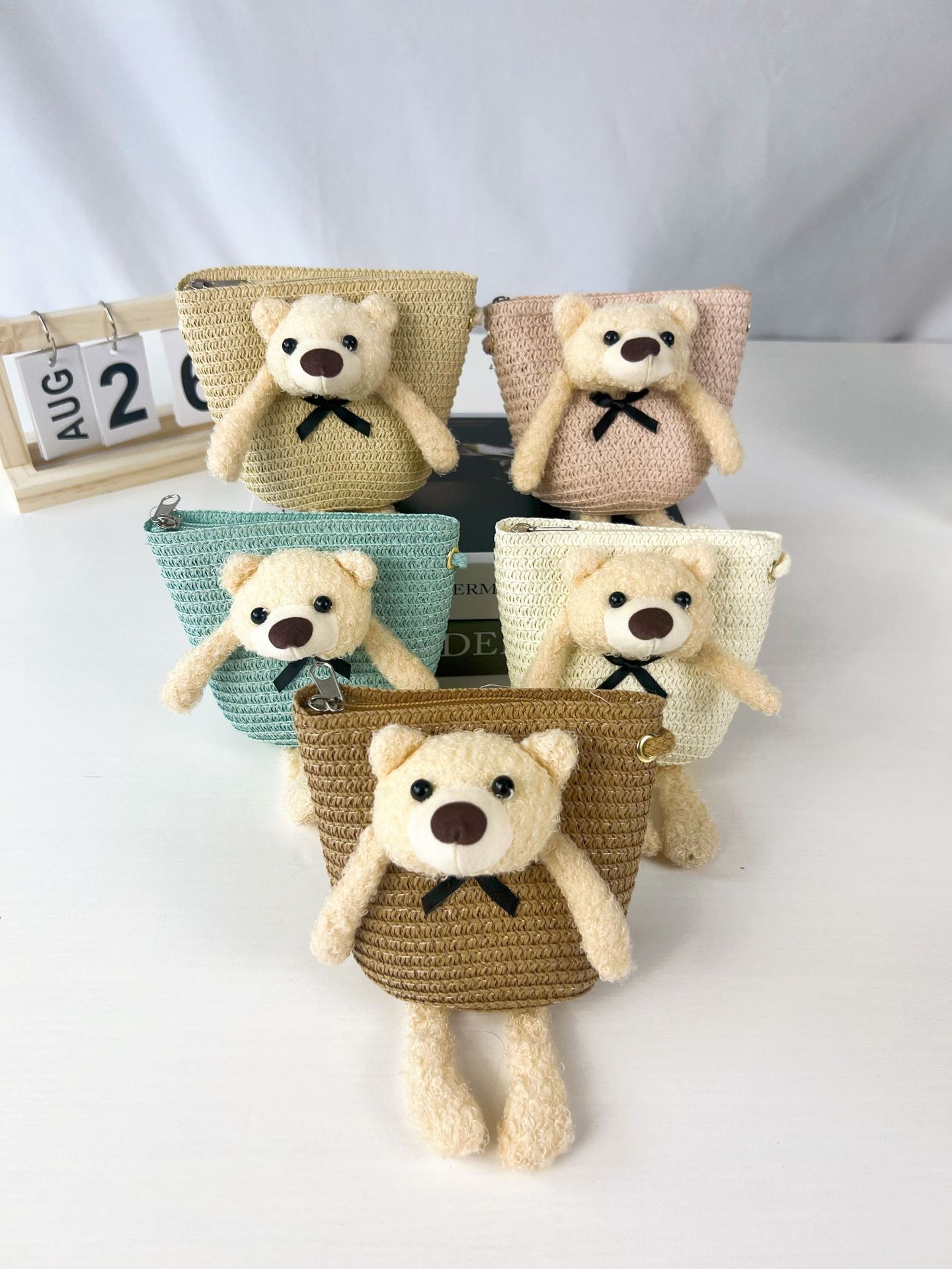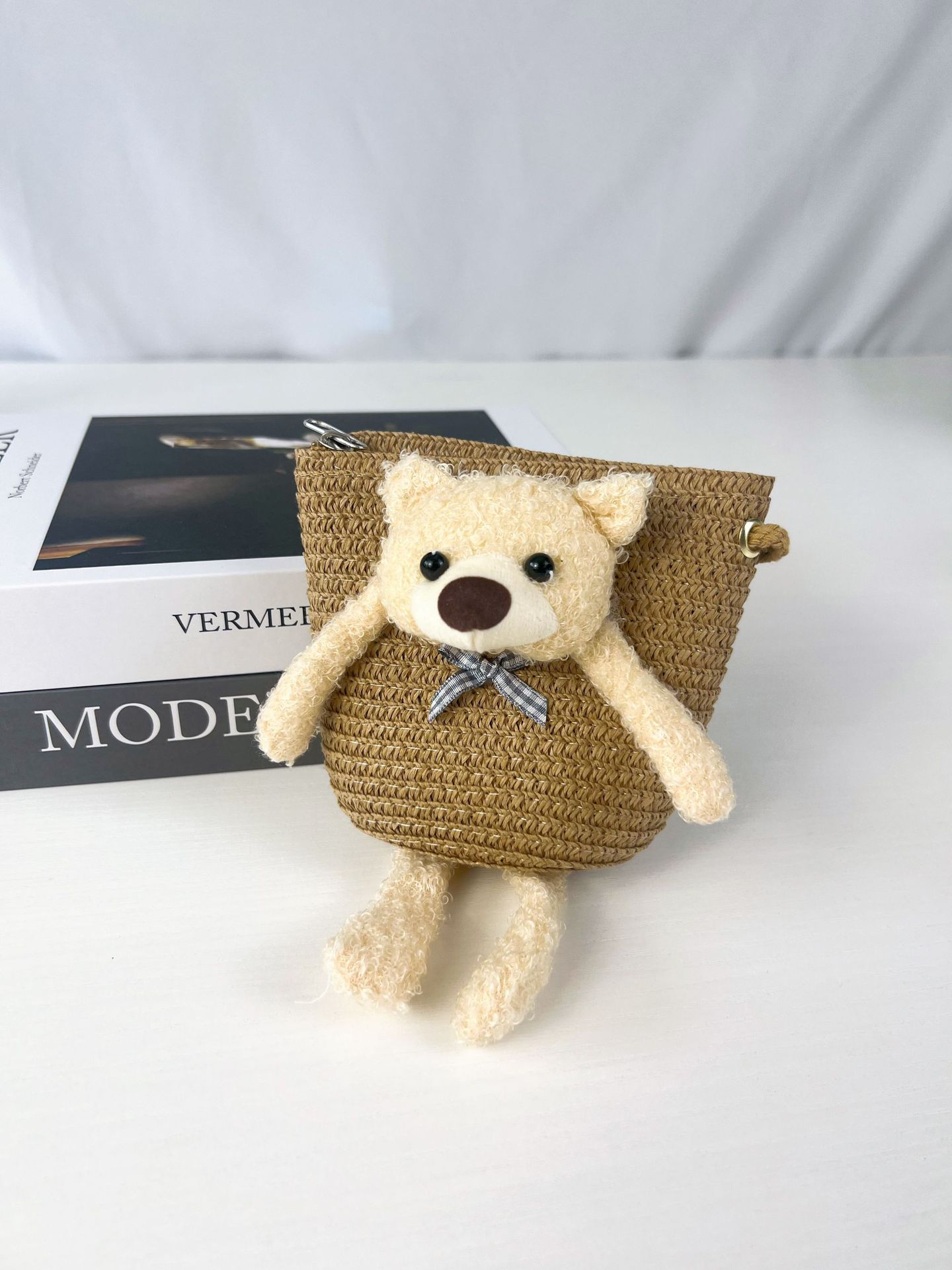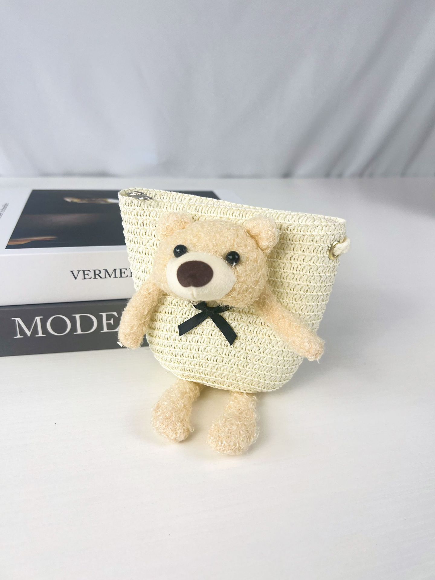 아기 밀짚 작은 가방 어린이 다목적 여름 새로운 만화 곰 대각선 동전 지갑 비치 가방 보관스토어 가기