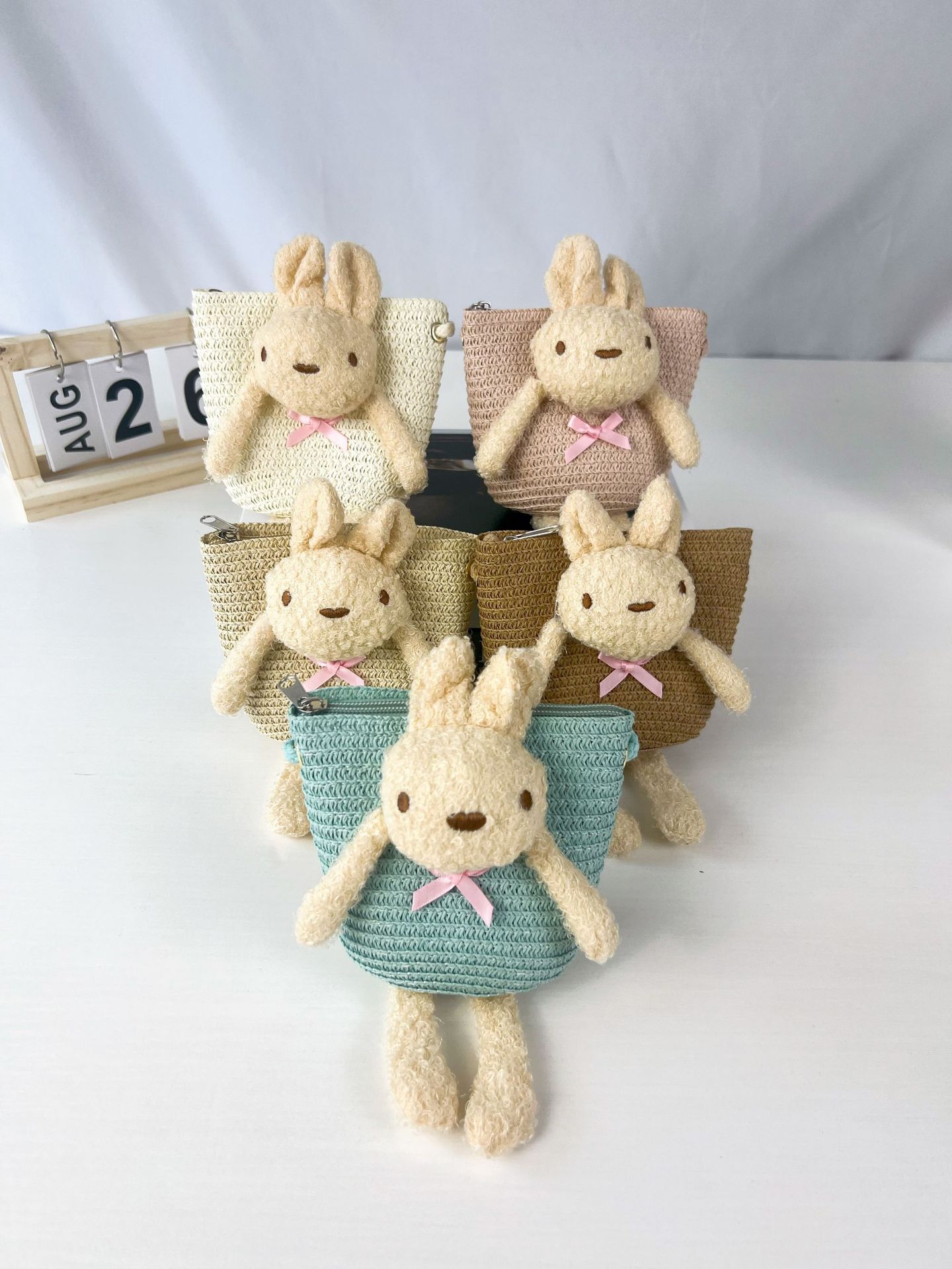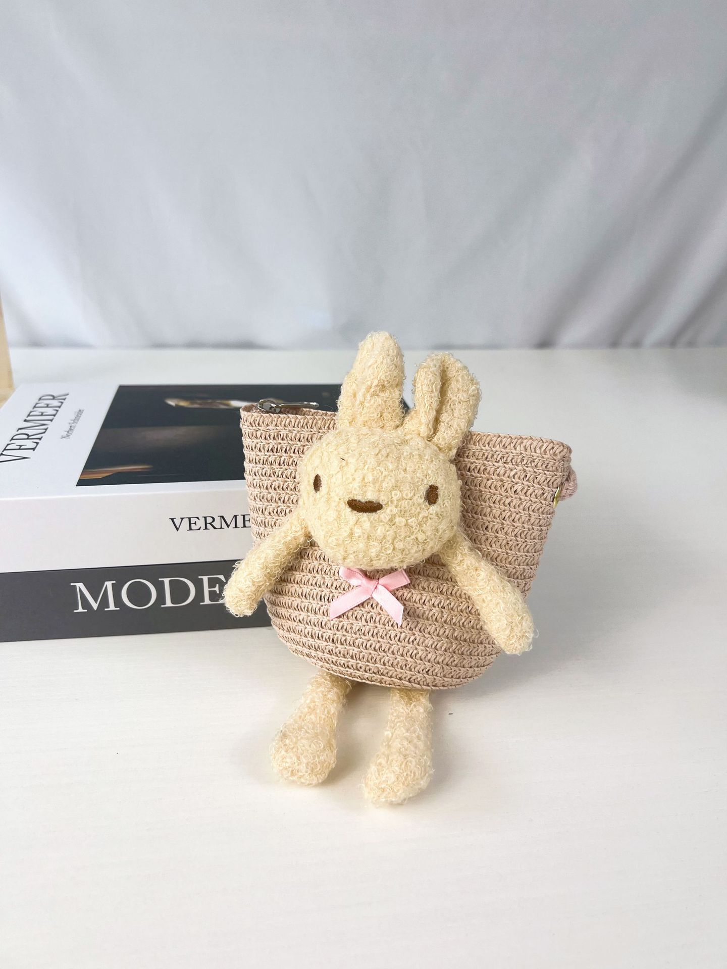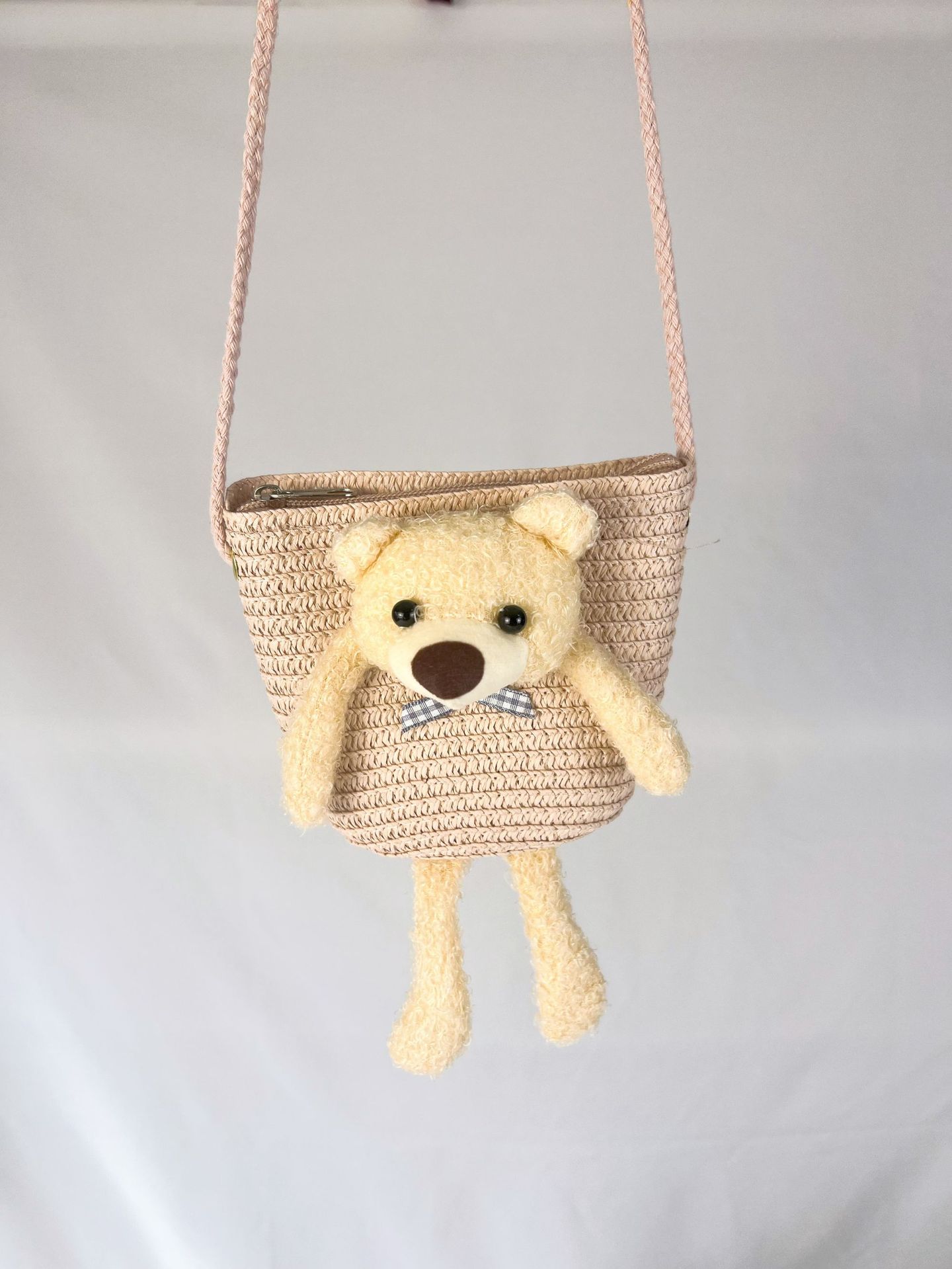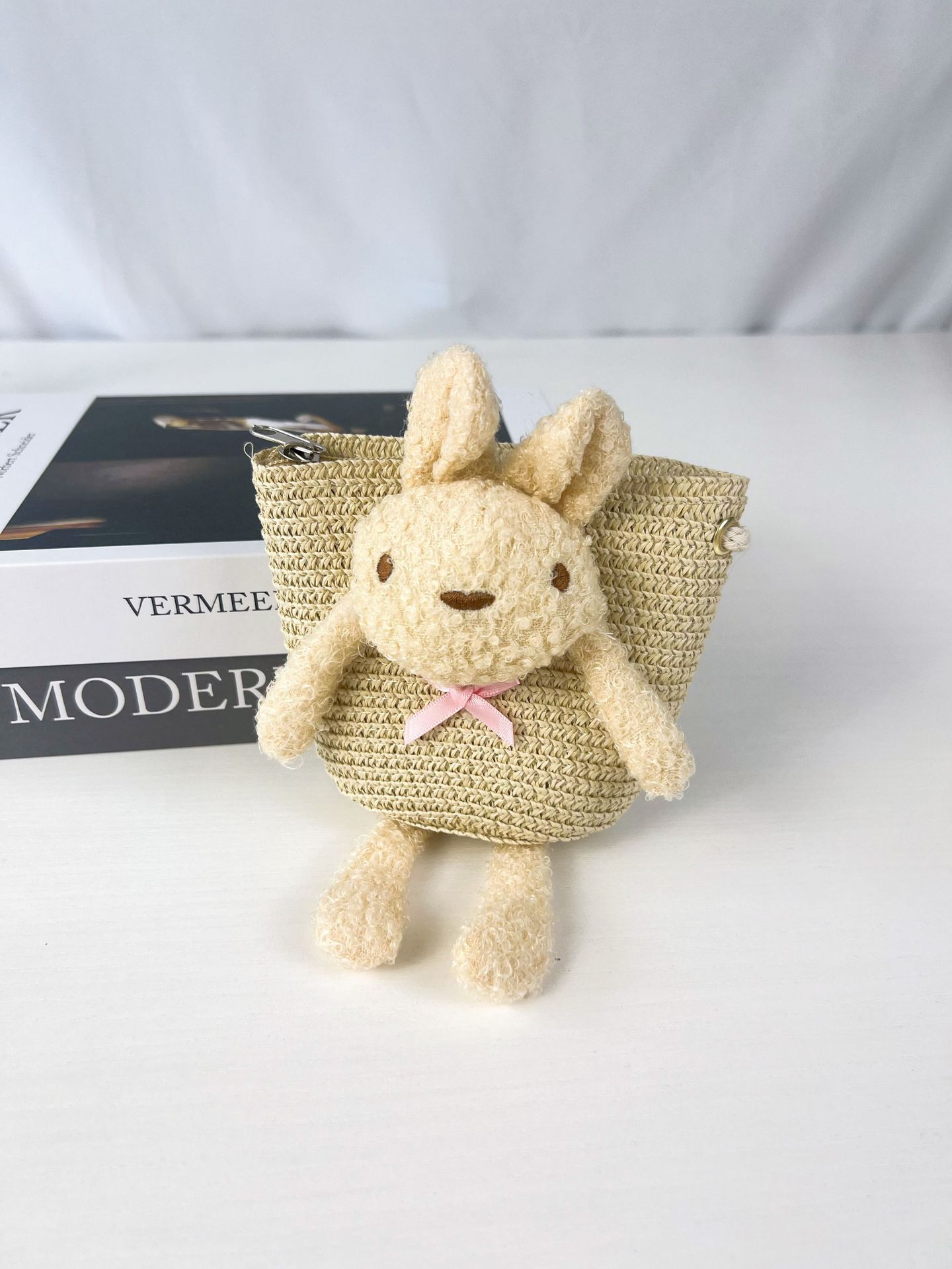 아기 밀짚 작은 가방 어린이 다목적 여름 새로운 만화 곰 대각선 동전 지갑 비치 가방 보관스토어 가기
