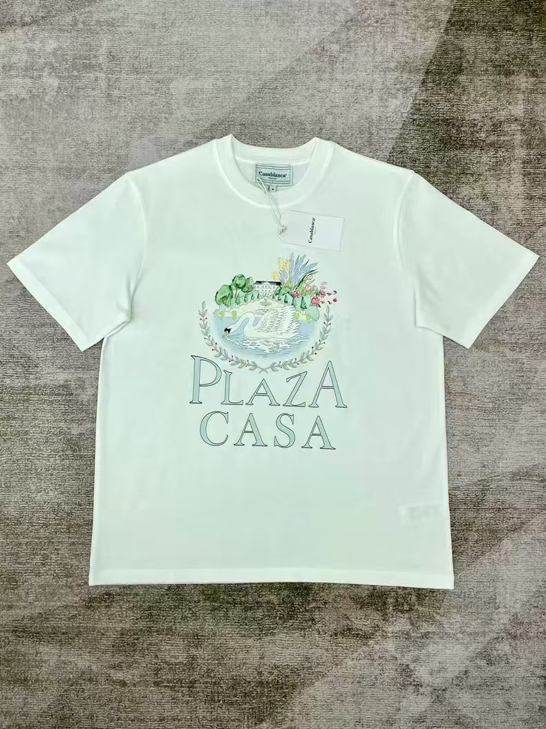 프린트 반팔 티셔츠 남성과 여성을위한 새로운 스타일 트렌디 브랜드 라운드 넥 루즈 캐주얼 여름 하이 버전 Casablanca 티셔츠