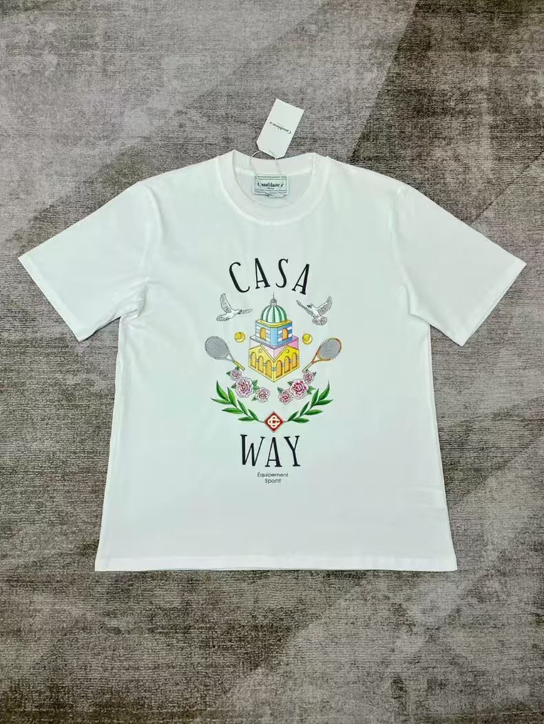 프린트 반팔 티셔츠 남성과 여성을위한 새로운 스타일 트렌디 브랜드 라운드 넥 루즈 캐주얼 여름 하이 버전 Casablanca 티셔츠스토어 가기
