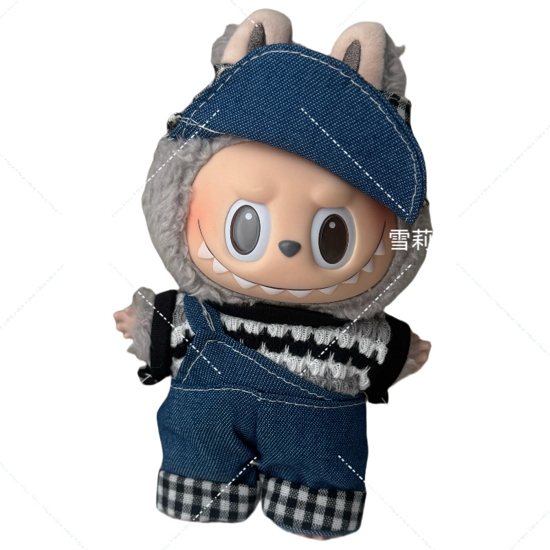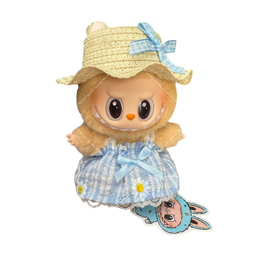 라부부 1세대 및 2세대 마카롱 블라인드 박스 펜던트, 멜빵 원피스, 밀짚모자, 좌석 파티용 의류