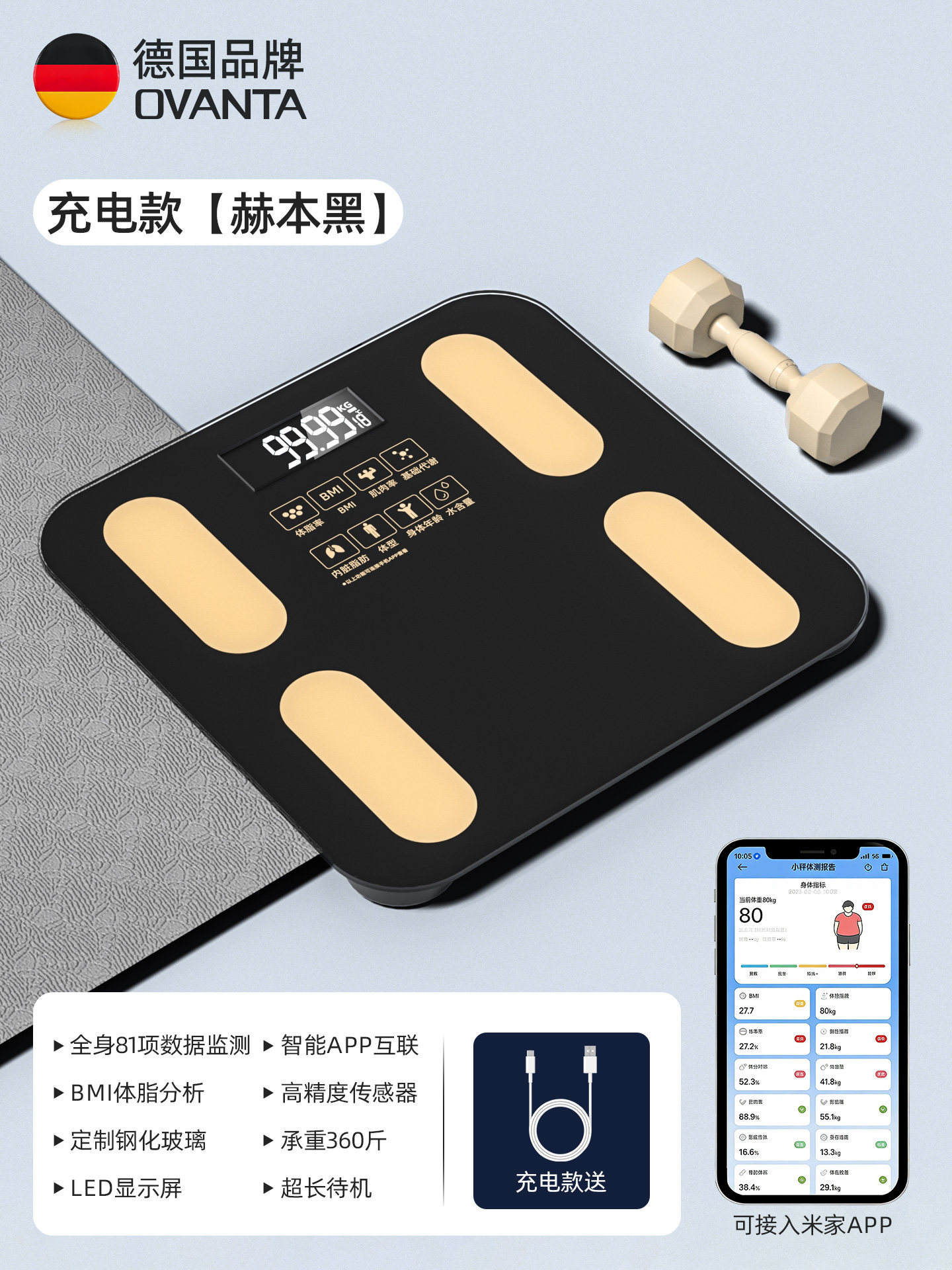 • Haoyuebai [충전식 체지방 측정기] 체중 감량 전용/정확한 무게 측정/미지아 앱 지원