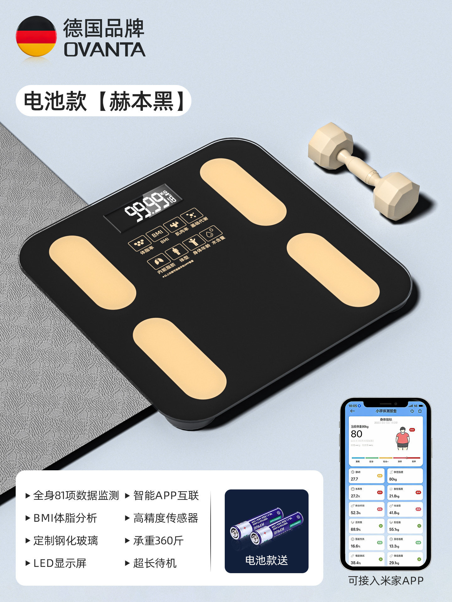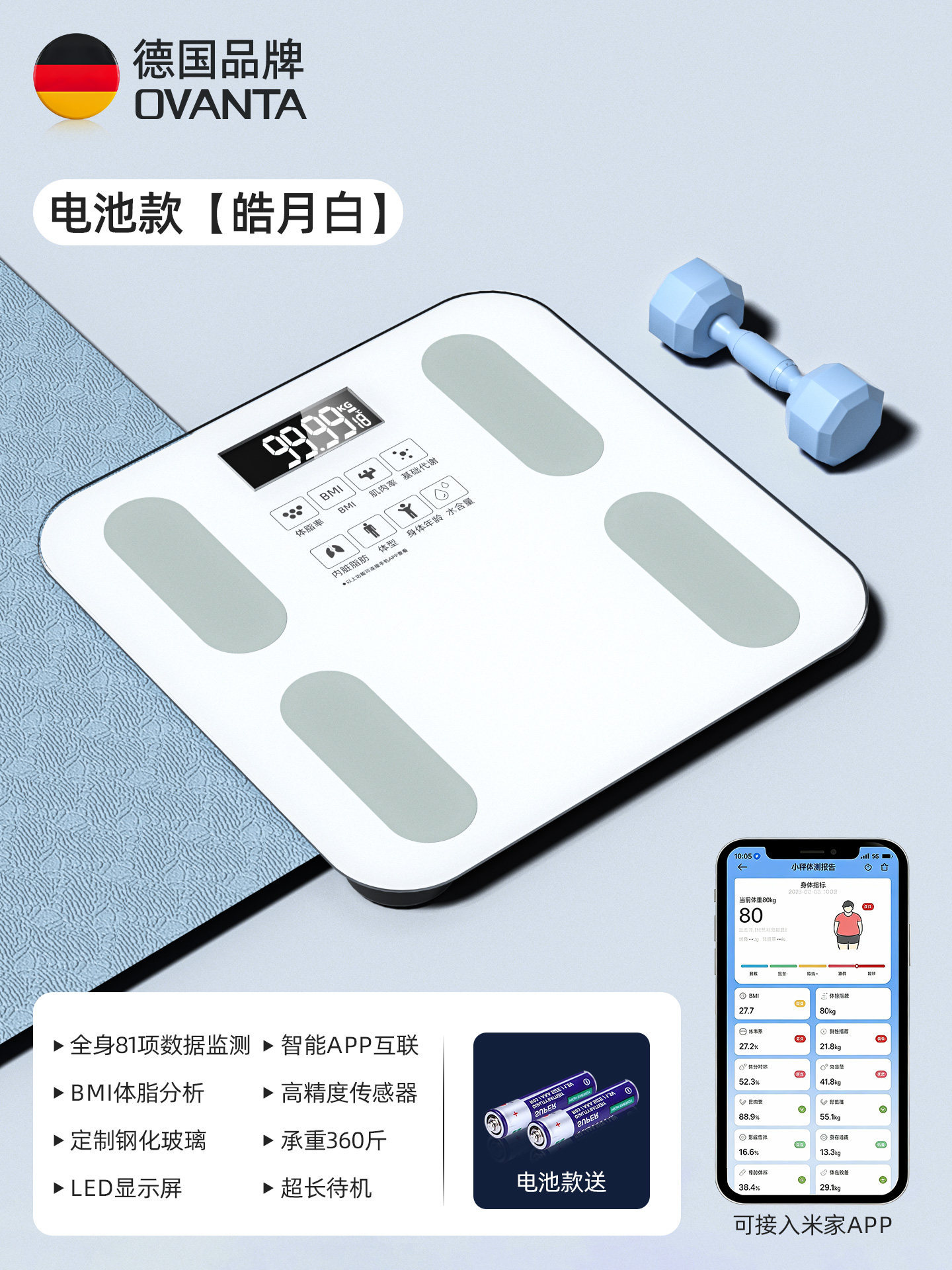 • Haoyuebai [배터리 체지방 측정기] 체중 감량 전용/정확한 무게 측정/미지아 앱 지원