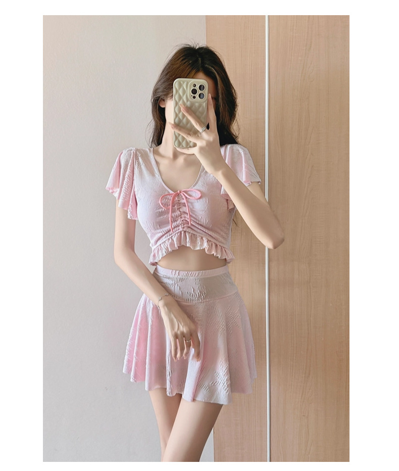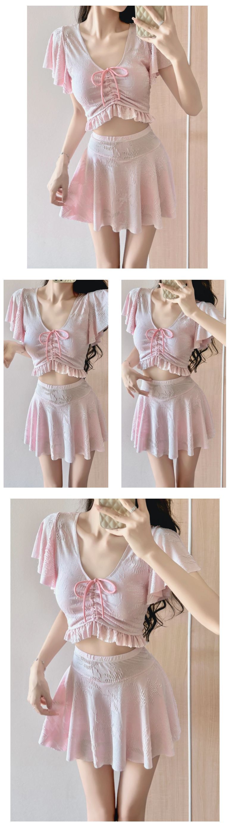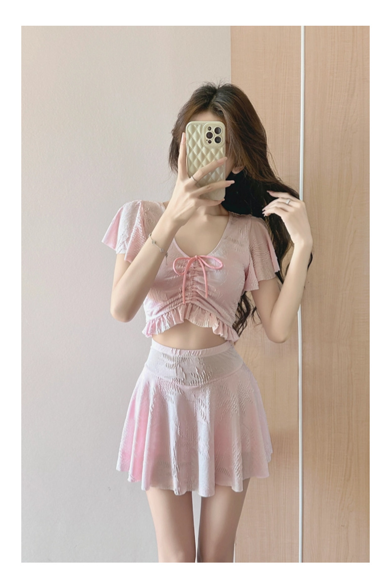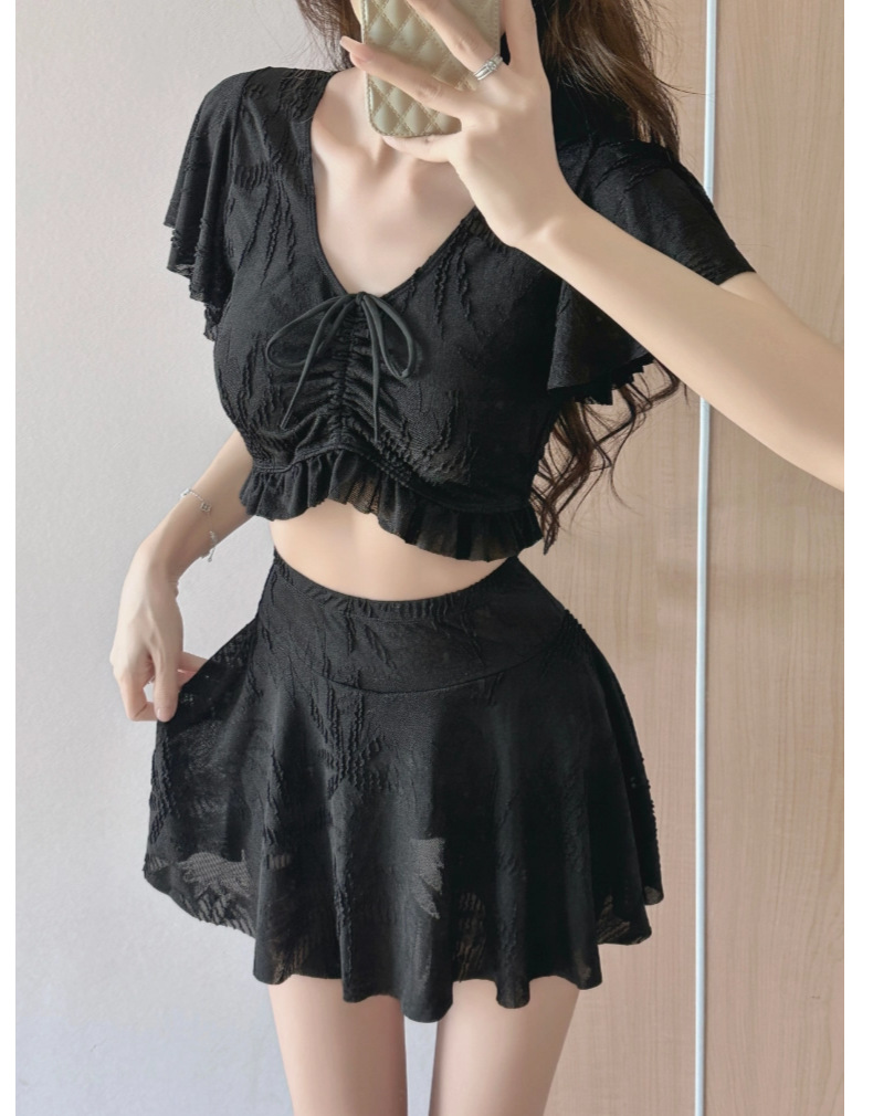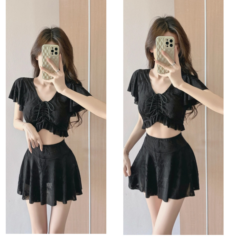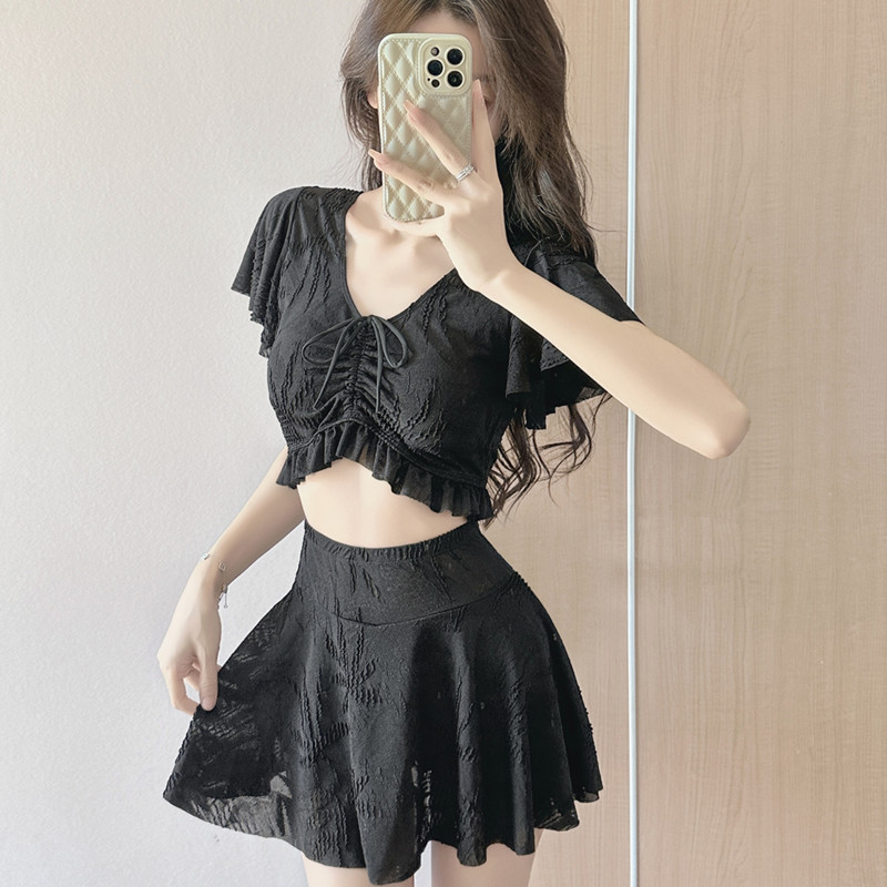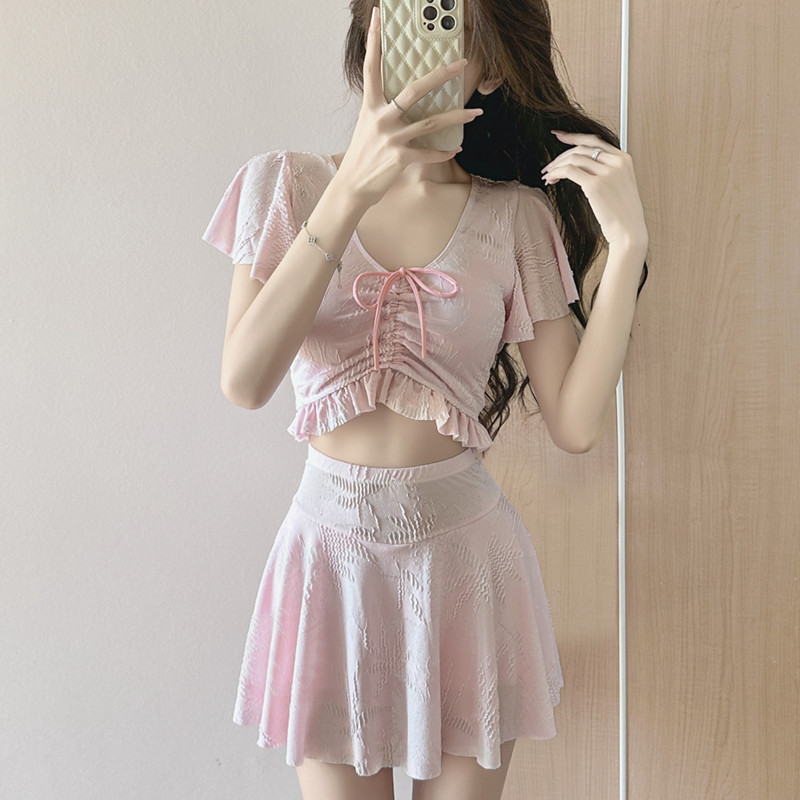 2025 새로운 수영 세트 여성 여름 분할 투피스 세트 보수적 슬림 배 커버하는 섹시한 요정 온천 수영복