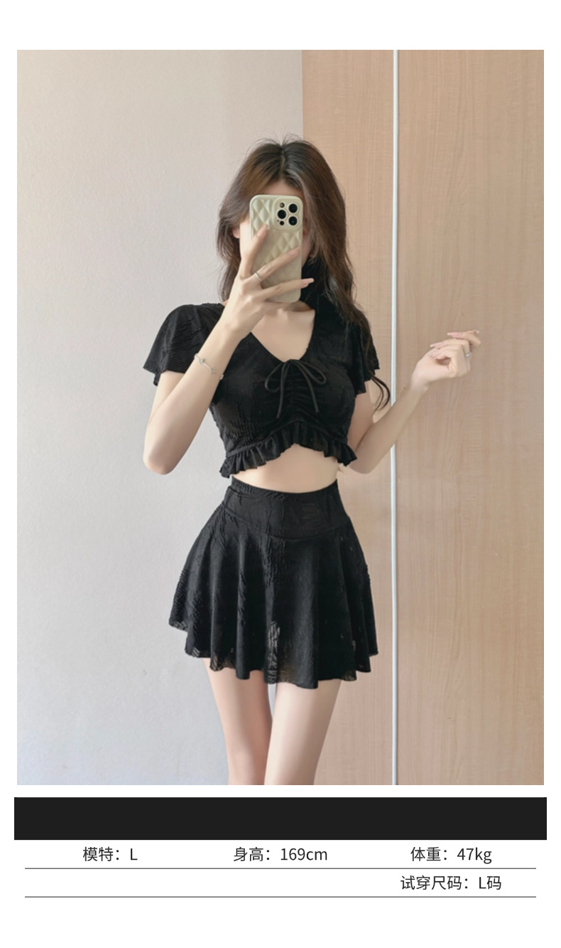 2025 새로운 수영 세트 여성 여름 분할 투피스 세트 보수적 슬림 배 커버하는 섹시한 요정 온천 수영복스토어 가기