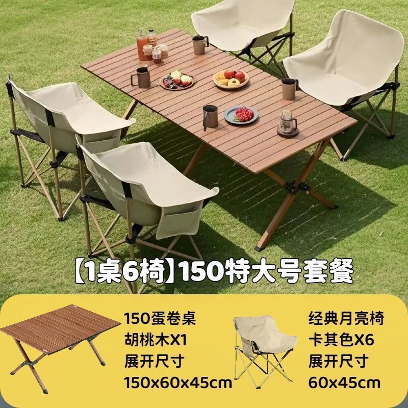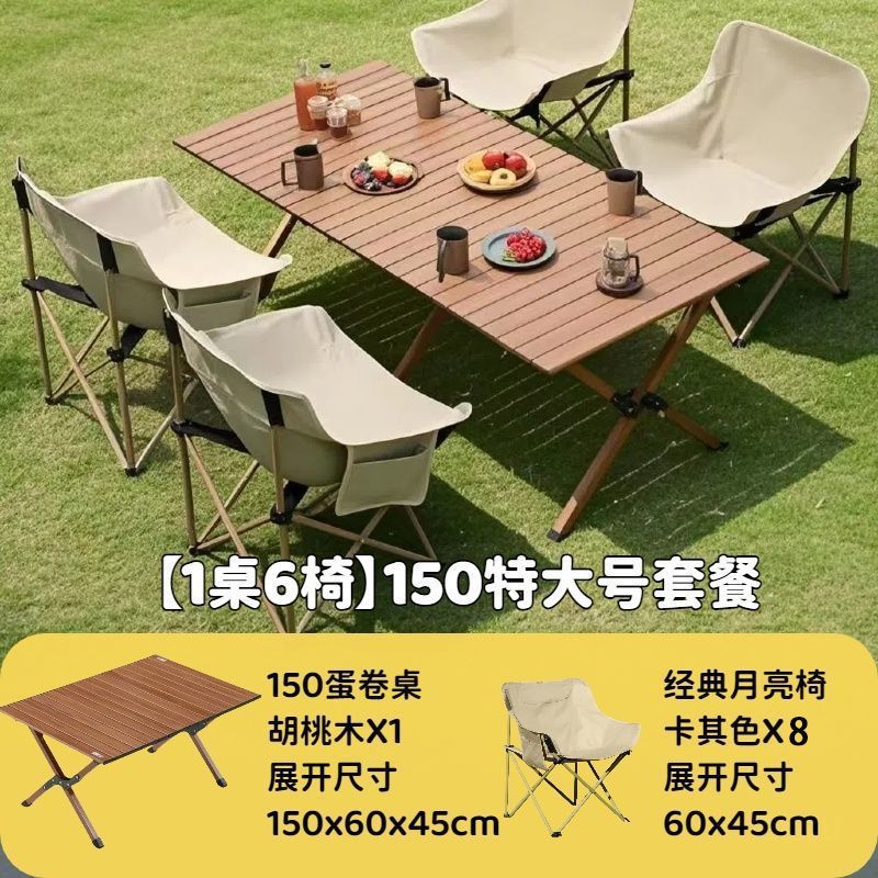 • [클래식 우드 컬러] 고탄소강 합금 접이식 테이블-[테이블 1개, 의자 4개] 150cm 에그롤 테이블 + 달의자*6