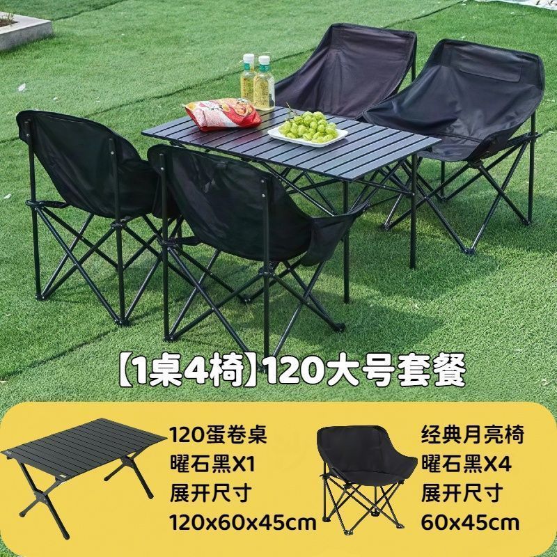 • [옵시디언블랙] 캠핑 및 피크닉용품-[테이블 1개, 의자 4개] 120cm 에그롤 테이블 + 달의자*4
