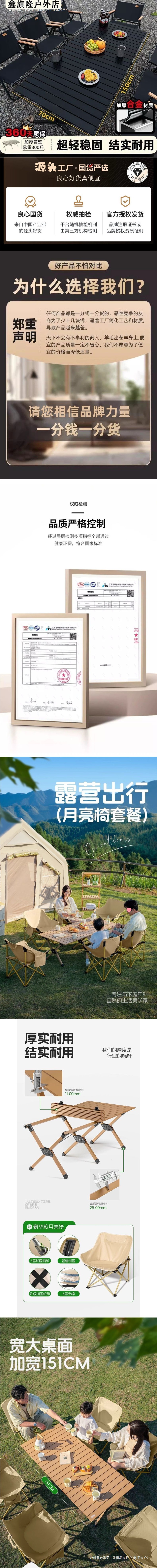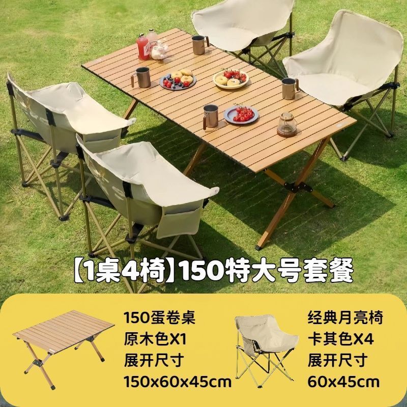 • [클래식 우드 컬러] 고탄소강 합금 접이식 테이블-[테이블 1개, 의자 4개] 150cm 에그롤 테이블 + 달의자*4