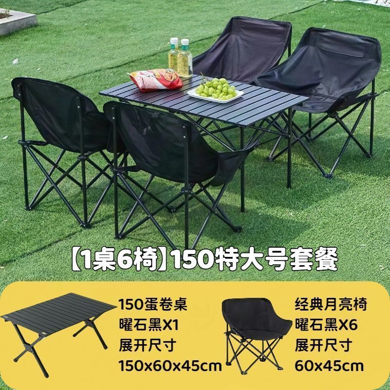 • [옵시디언블랙] 캠핑 및 피크닉용품-[테이블 1개, 의자 4개] 150cm 에그롤 테이블 + 달의자*6