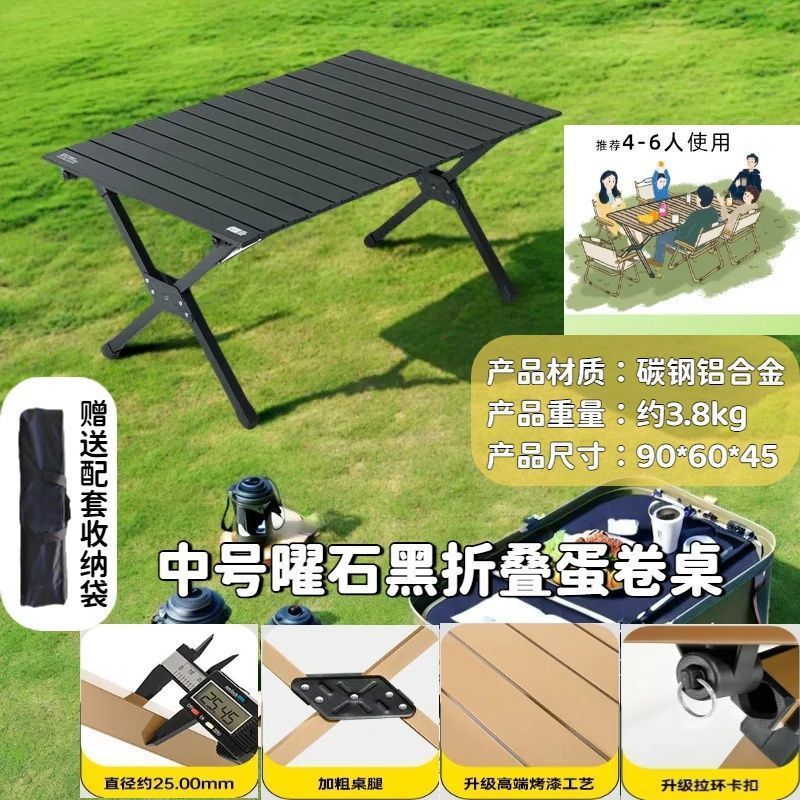 • [옵시디언블랙] 캠핑 및 피크닉용품-[테이블 1개, 의자 2개] 90cm 에그롤 테이블 + 달의자*4