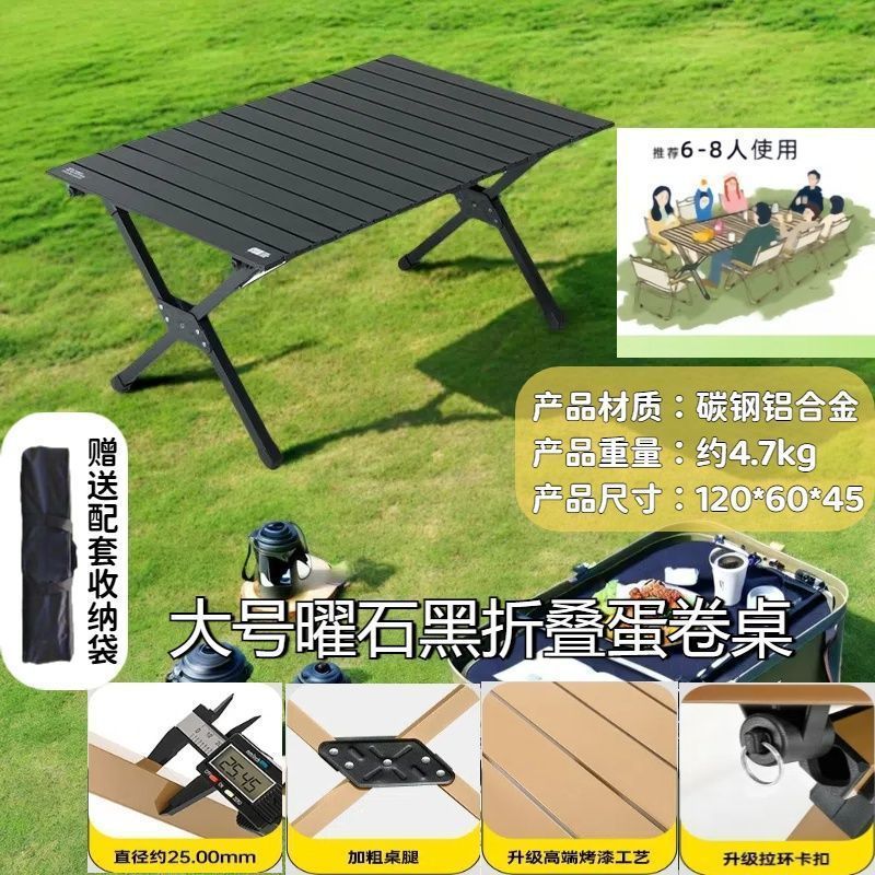 • [옵시디언블랙] 캠핑 및 피크닉용품-[테이블 1개, 의자 4개] 120cm 에그롤 테이블 + 달의자*6