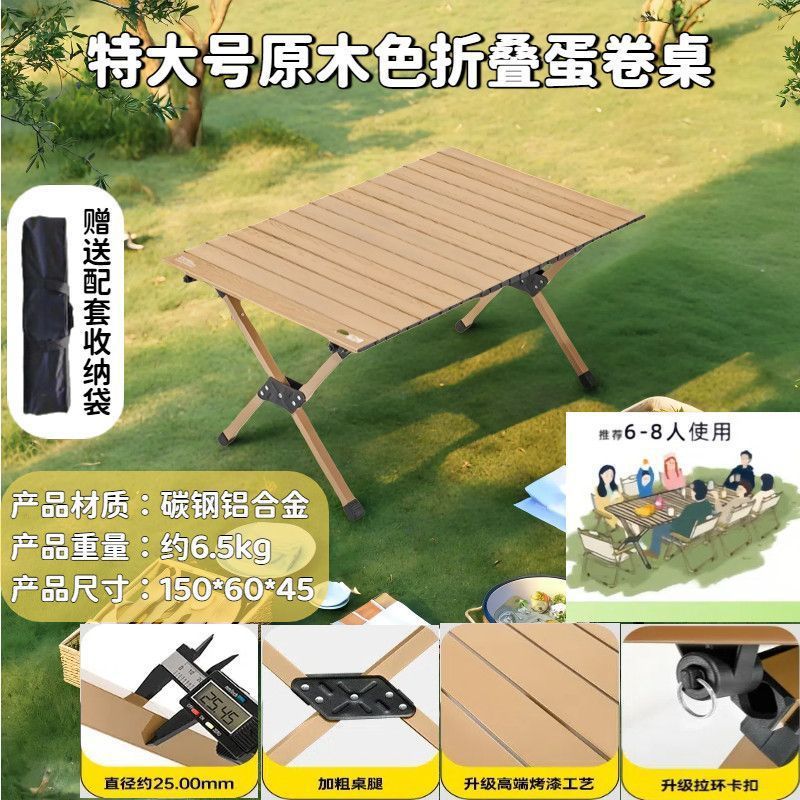 • [클래식 우드 컬러] 고탄소강 합금 접이식 테이블-[150x60cm 특대형] 파티 캠핑 추천