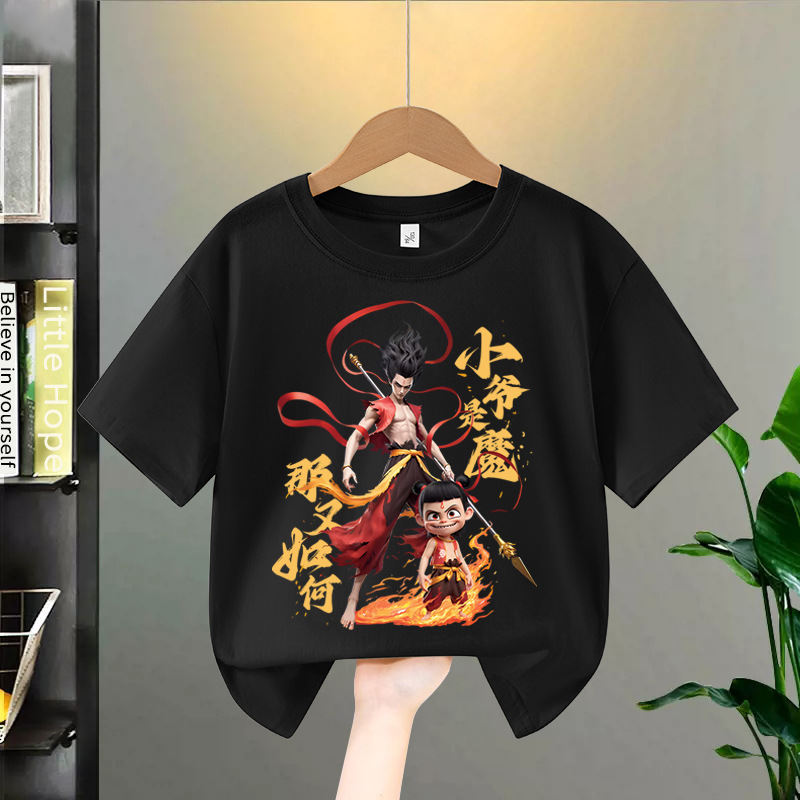 소년 네자 만화 반팔 티셔츠 여름 느슨한 2025 새로운 스타일 유행 인쇄 된 면화 탑스토어 가기