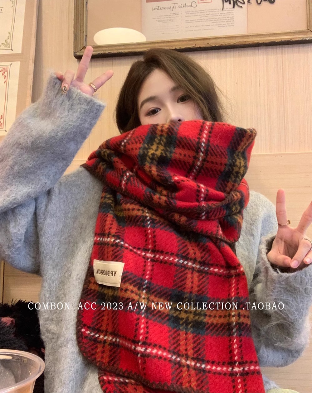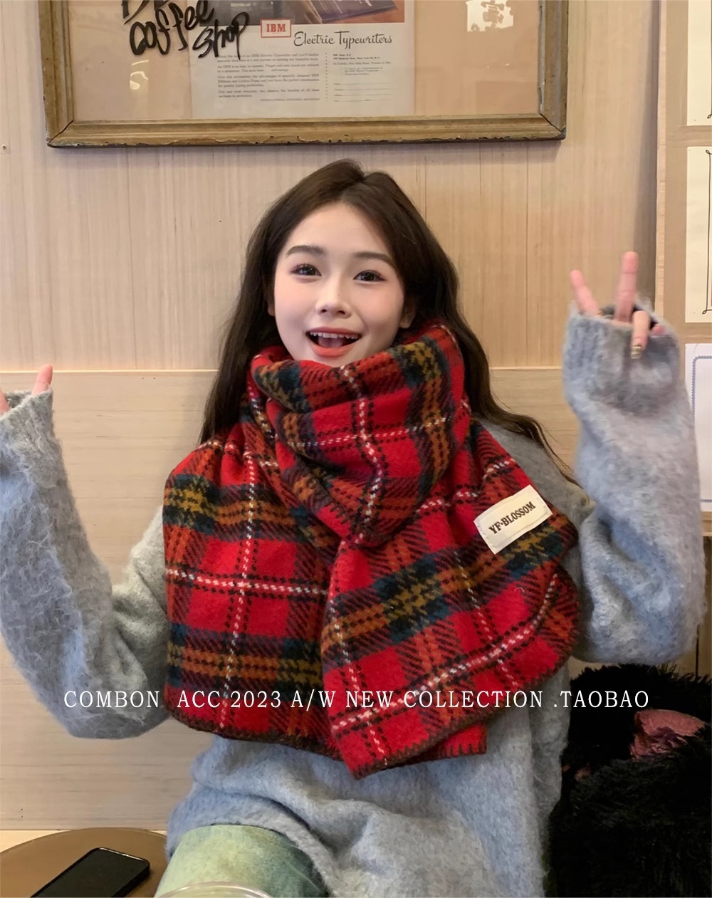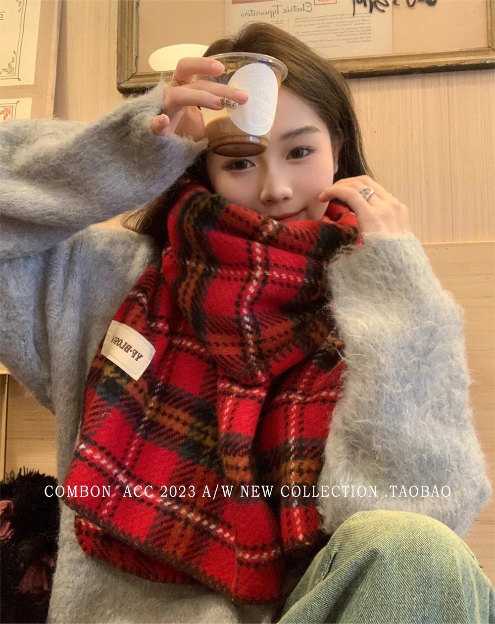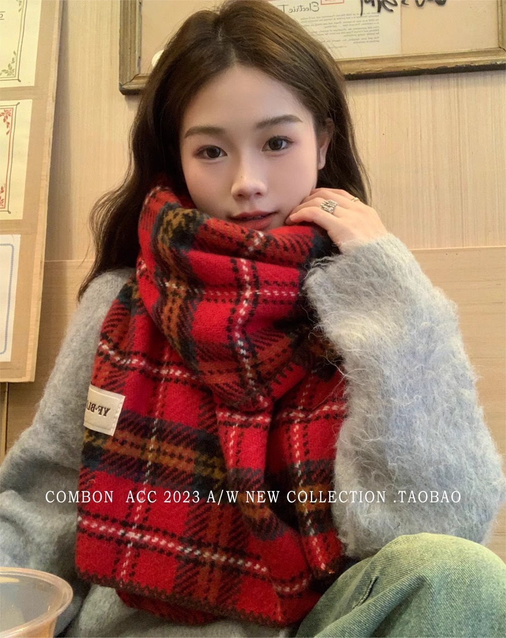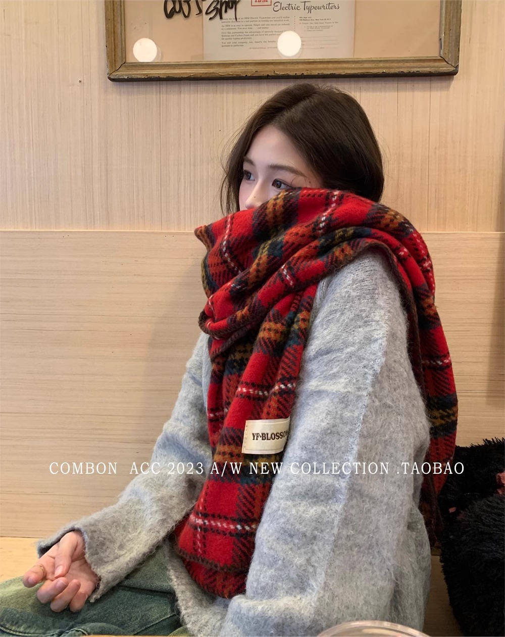 드래곤 레드 스카프 여성의 겨울 새해 2024 새로운 영국 격자 무늬 캐시미어 스카프 목도리 학생 선물 제공스토어 가기