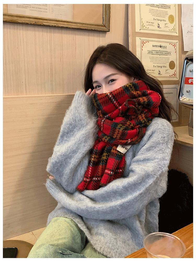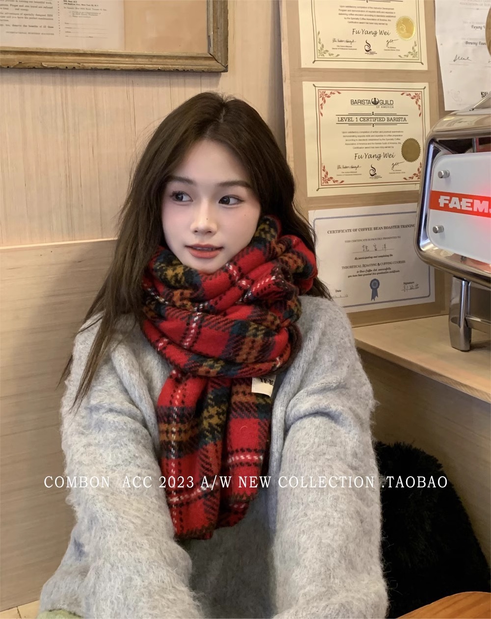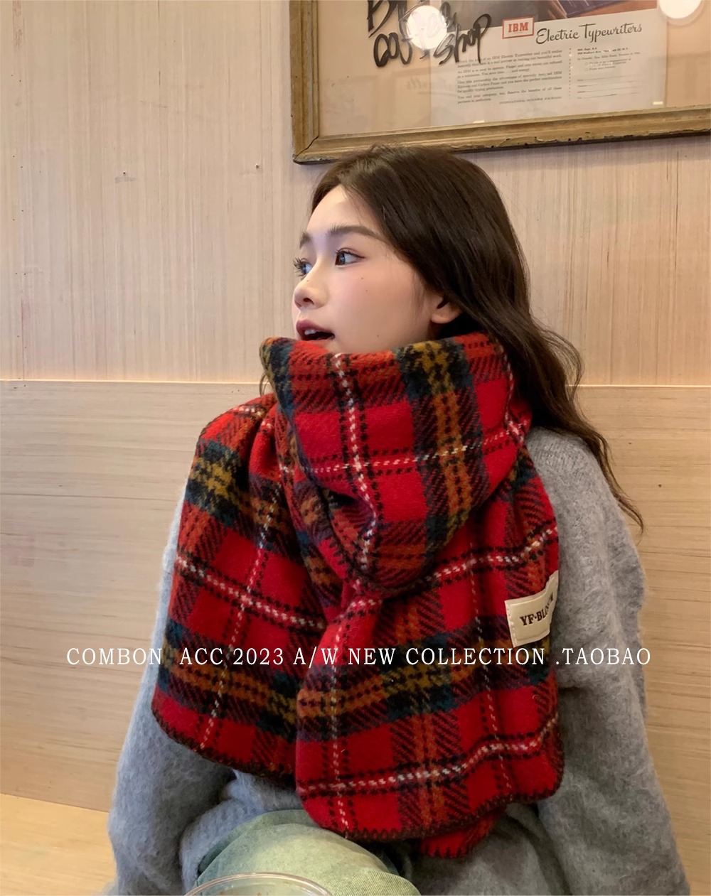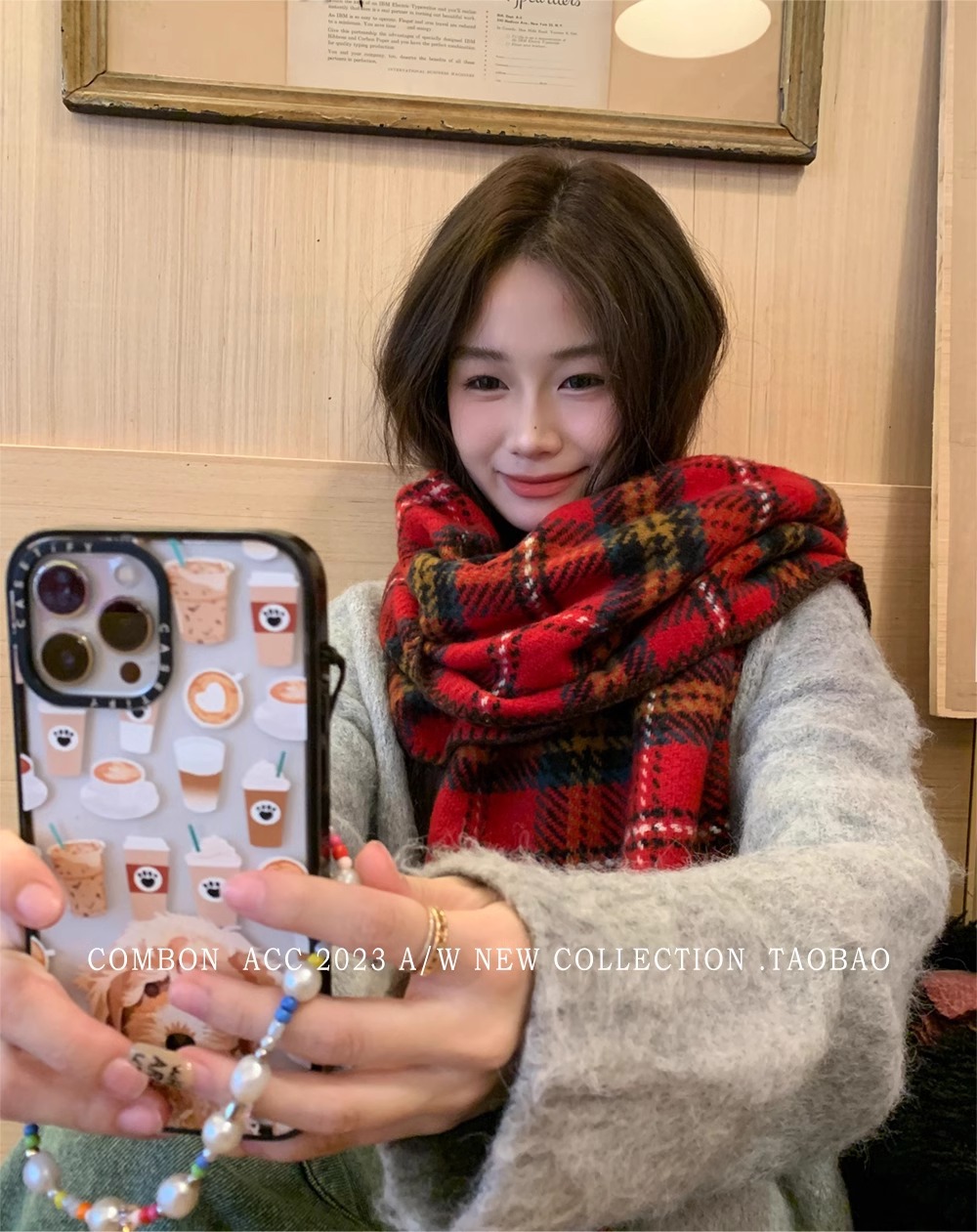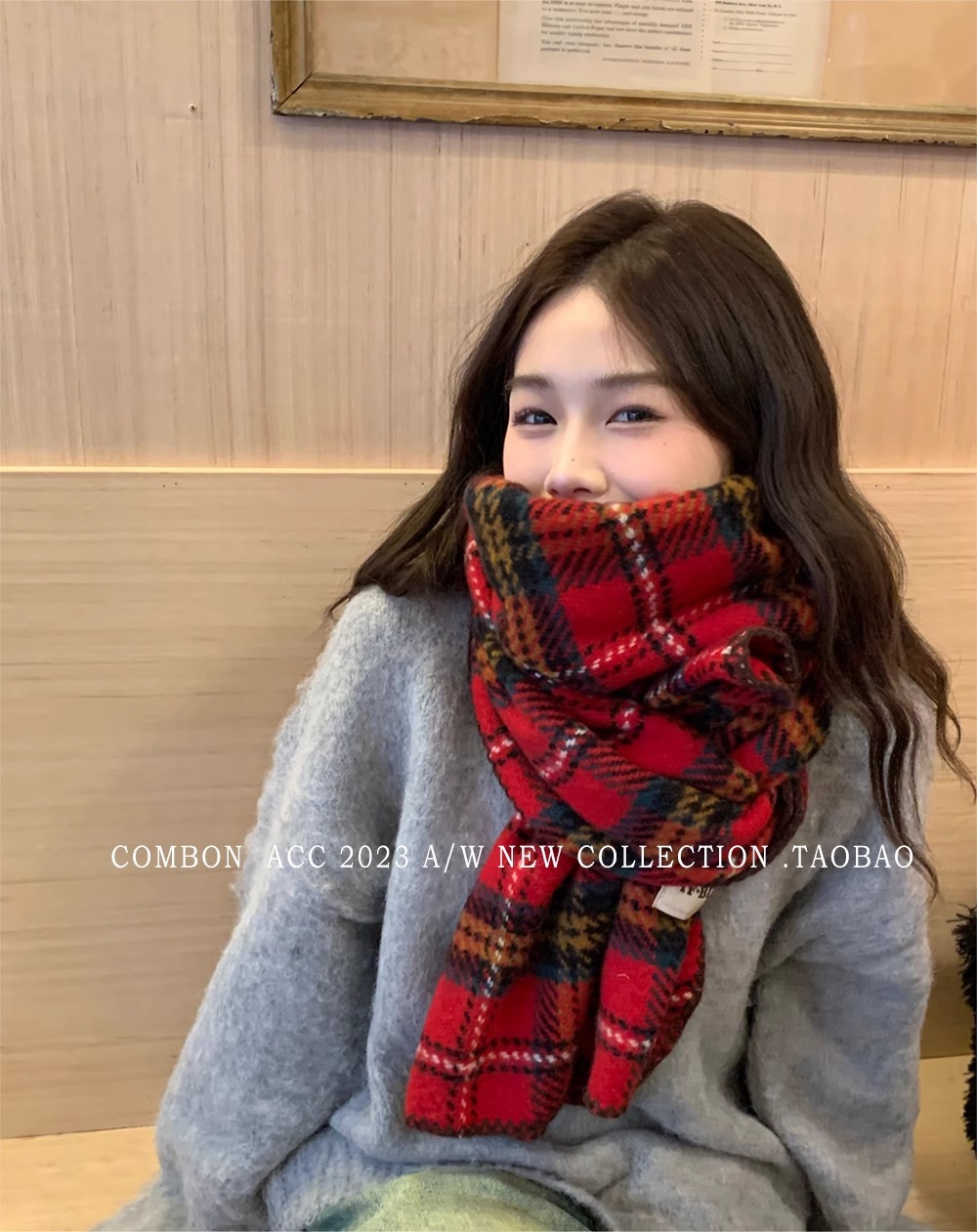 드래곤 레드 스카프 여성의 겨울 새해 2024 새로운 영국 격자 무늬 캐시미어 스카프 목도리 학생 선물 제공스토어 가기