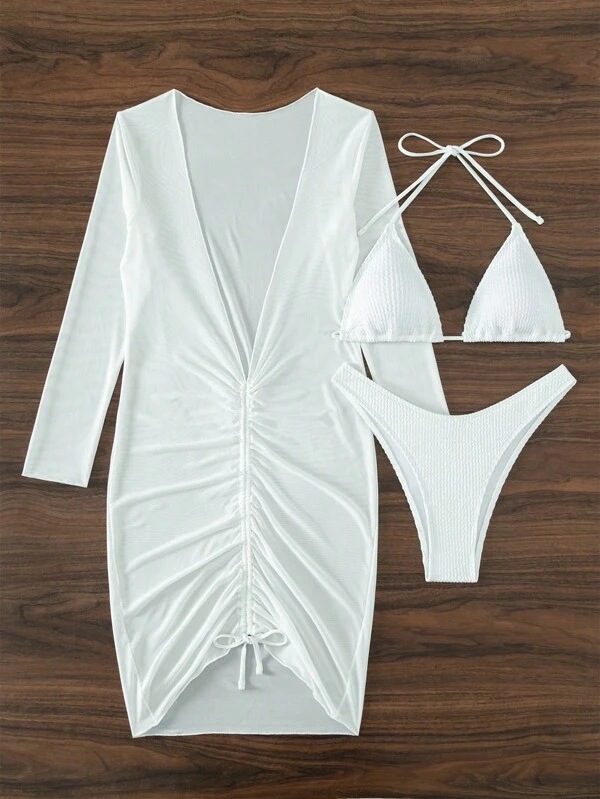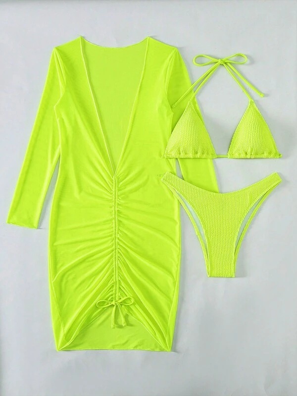 2025 새로운 솔리드 컬러 비키니 섹시 드로우 스트링 수영복 3 조각 국경 아마존 타이트 슬림 수영복 여성스토어 가기