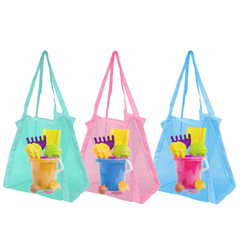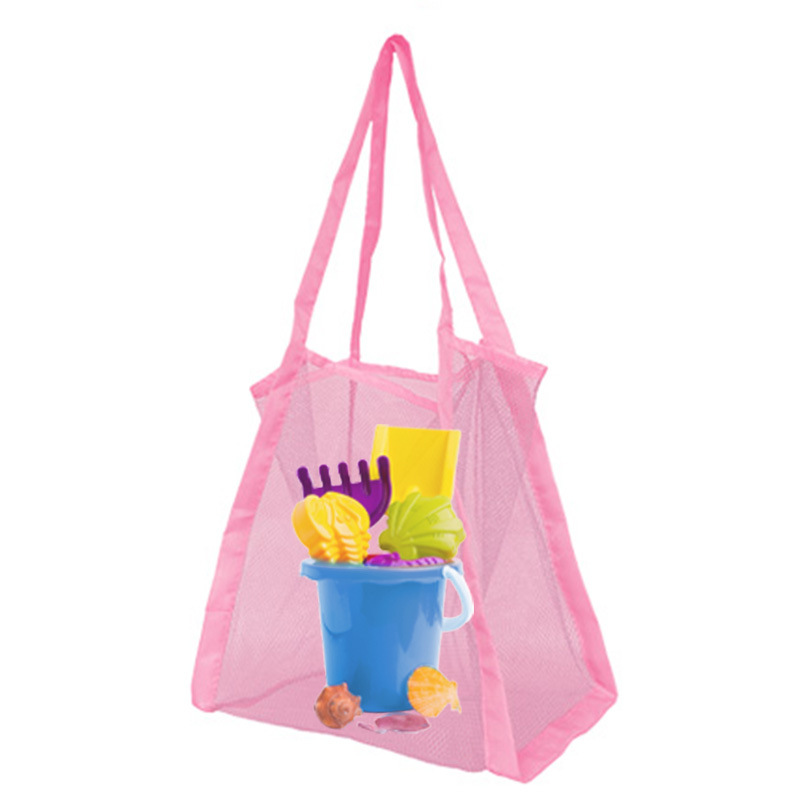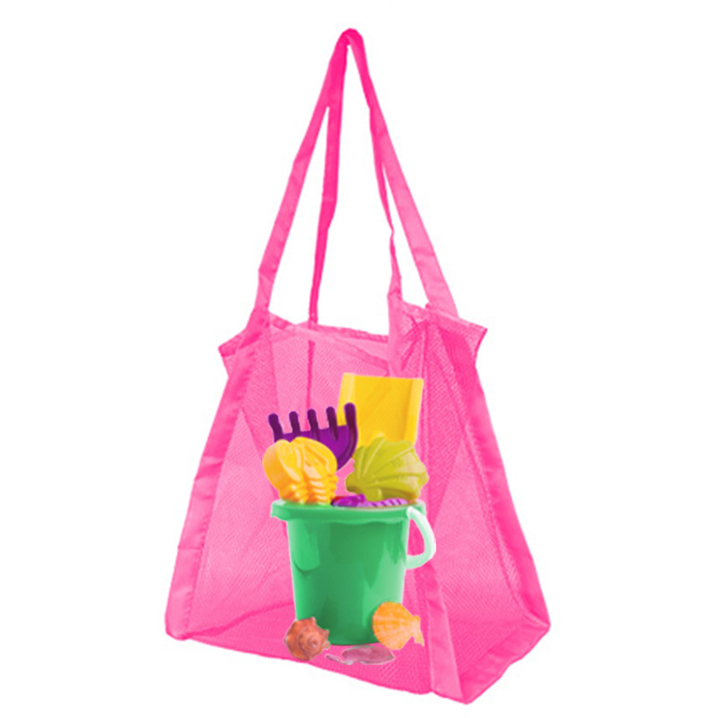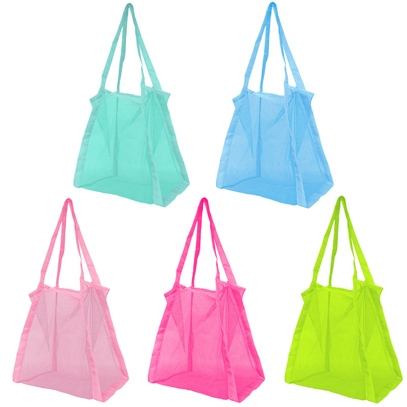 아마존 대용량 솔리드 컬러 핸드 쇼핑백 메쉬 백 잡화 그리드 보관 가방 해변 장난감 보관 가방