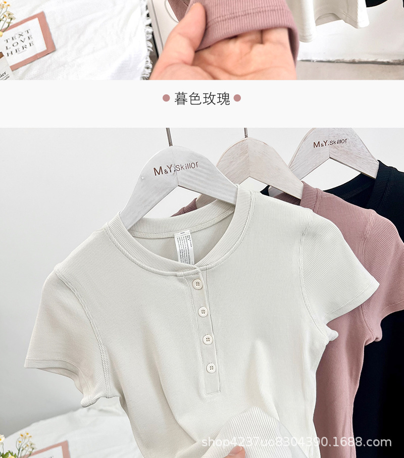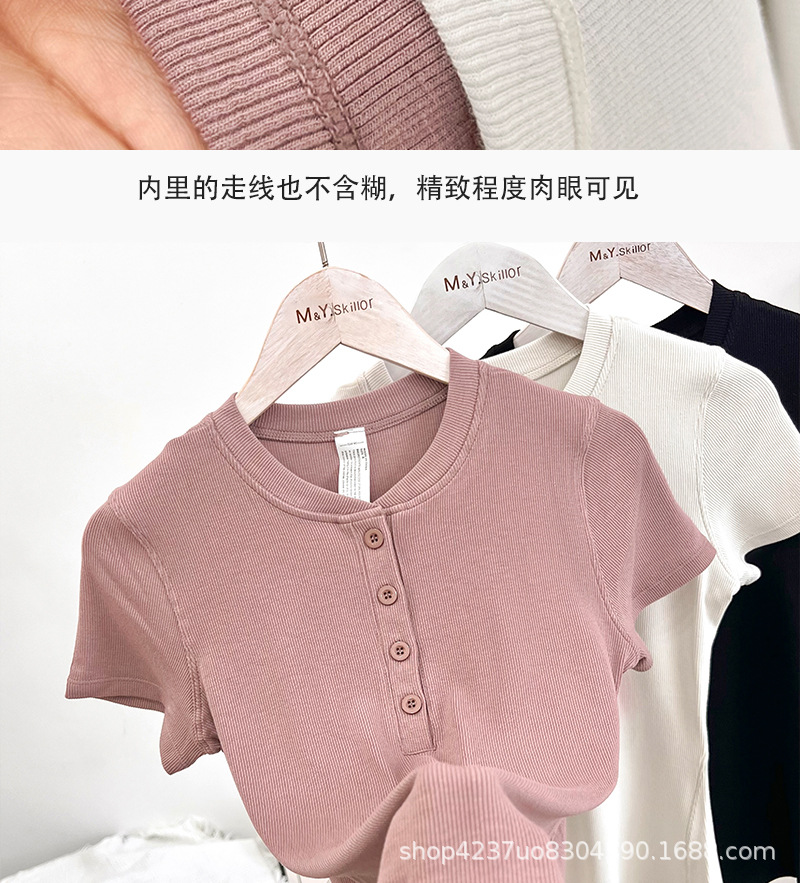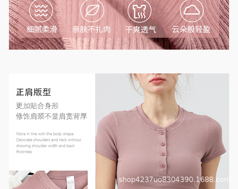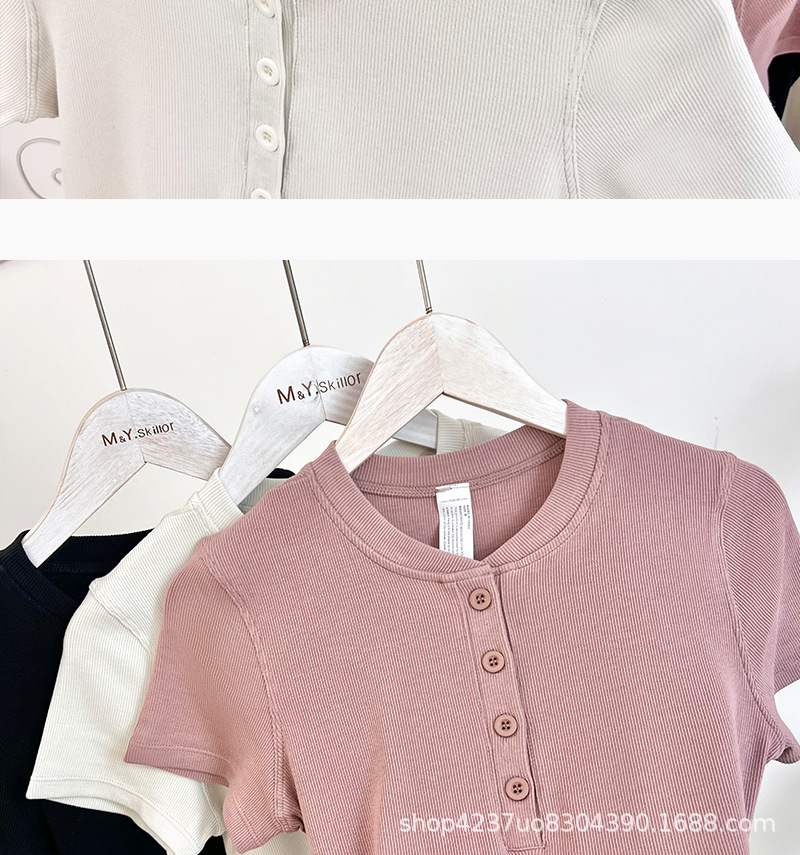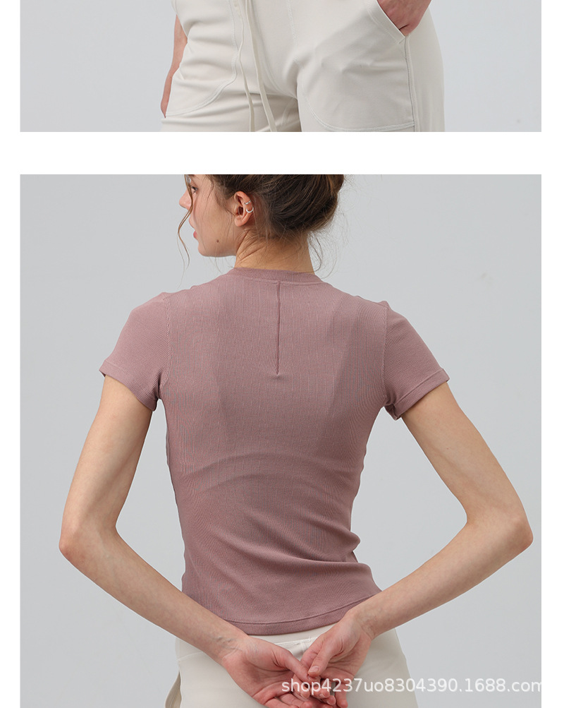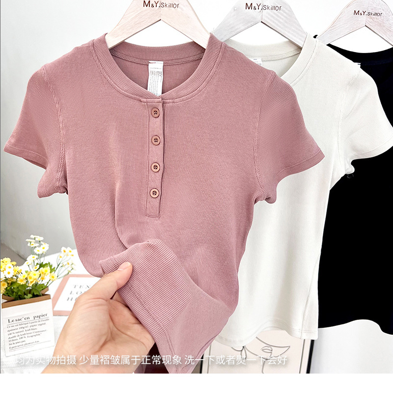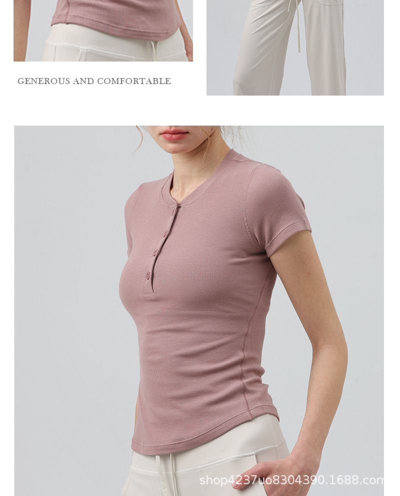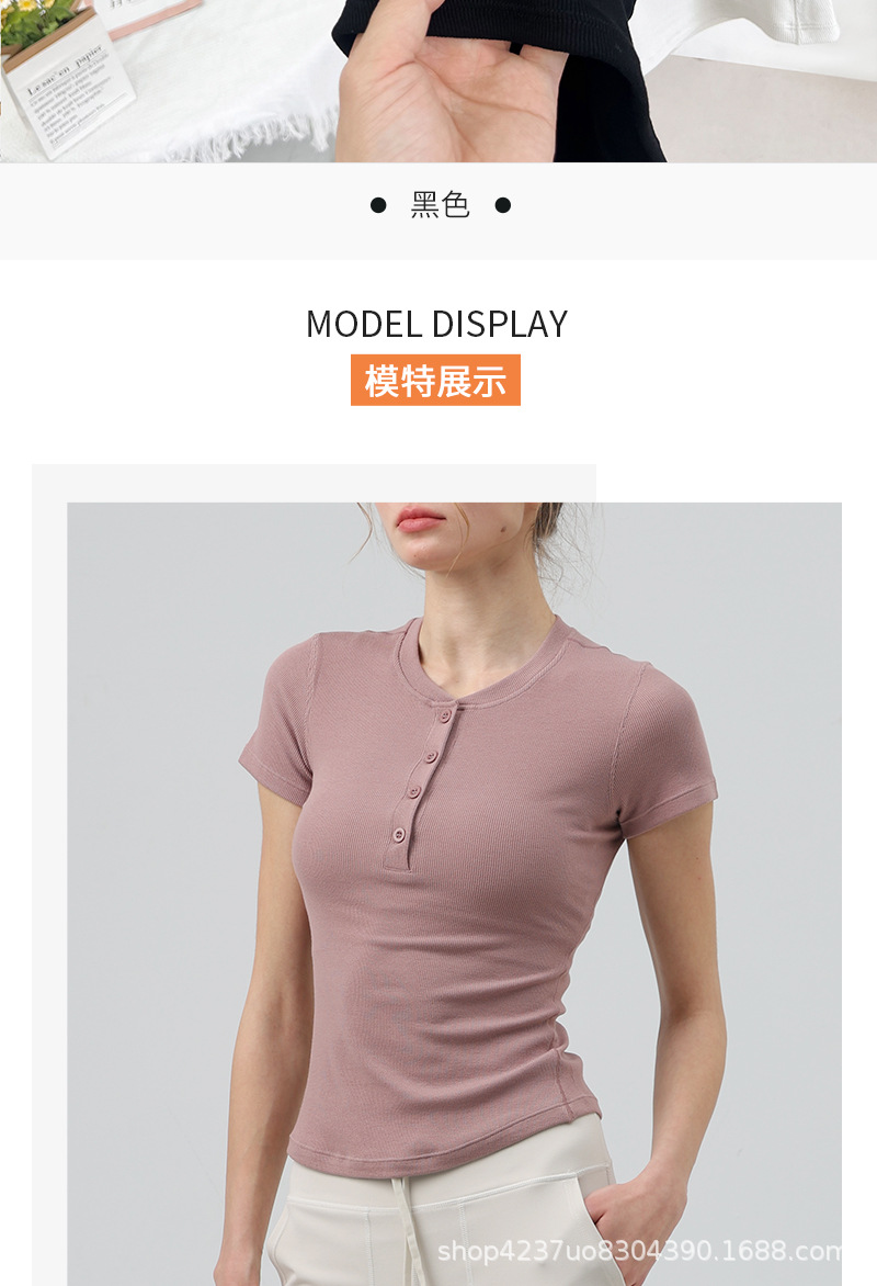 룰루 하프 오픈 칼라 스레드 반팔 헨리 셔츠 여자 여름 슬림 핏 슬리밍 스포츠 요가 쇼트 티셔츠