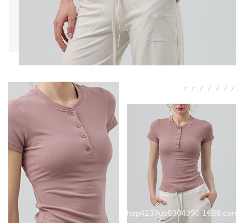 룰루 하프 오픈 칼라 스레드 반팔 헨리 셔츠 여자 여름 슬림 핏 슬리밍 스포츠 요가 쇼트 티셔츠스토어 가기