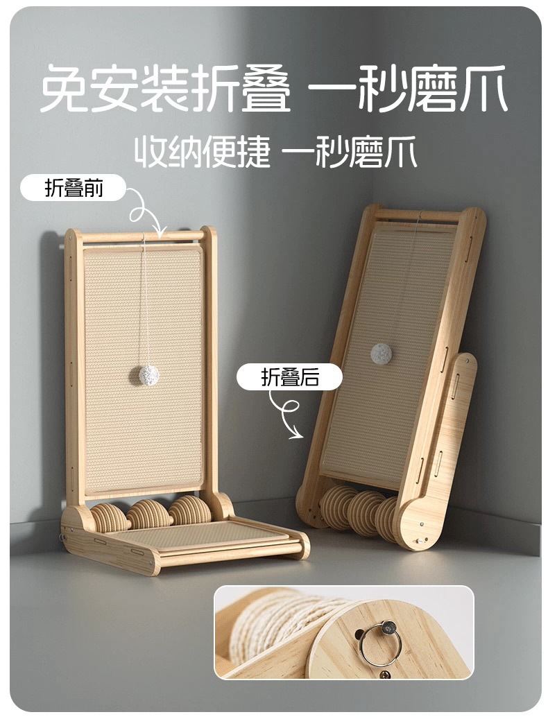 • 벽에 접힌 고양이 긁는 기둥 단단한 나무 황마 - 공 포함
