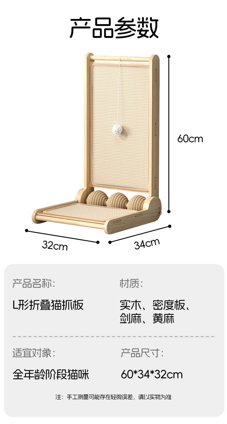 [야옹 음악 광장] 맞춤형 솔리드 우드 사이 살 고양이 스크래치 보드 내마모성 덤핑 고양이 발톱 보드 수직 잡아 열 고양이 스크래치 보드 둥지