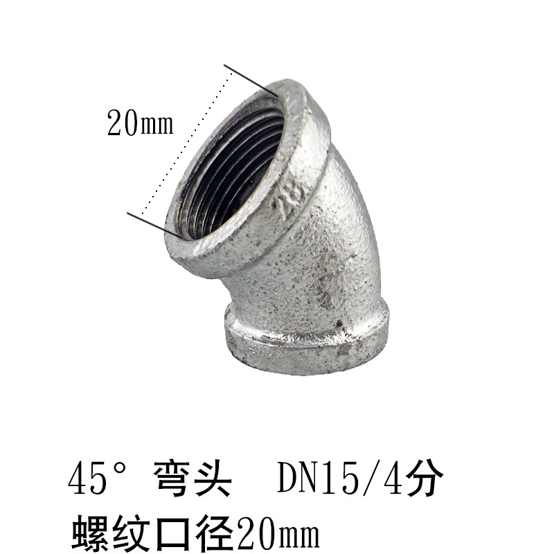 • DN15/4점×45°아연도금 철 팔꿈치