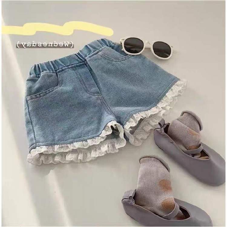 새로운 도착 소녀 데님 반바지 여름 외부 바지 아기 소녀 여름 옷 서양식 아동복스토어 가기