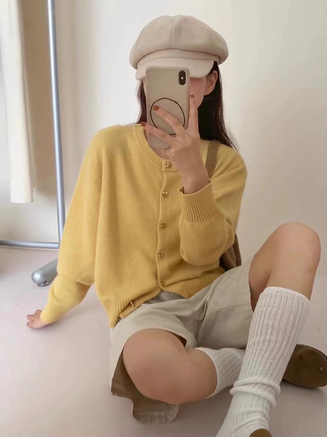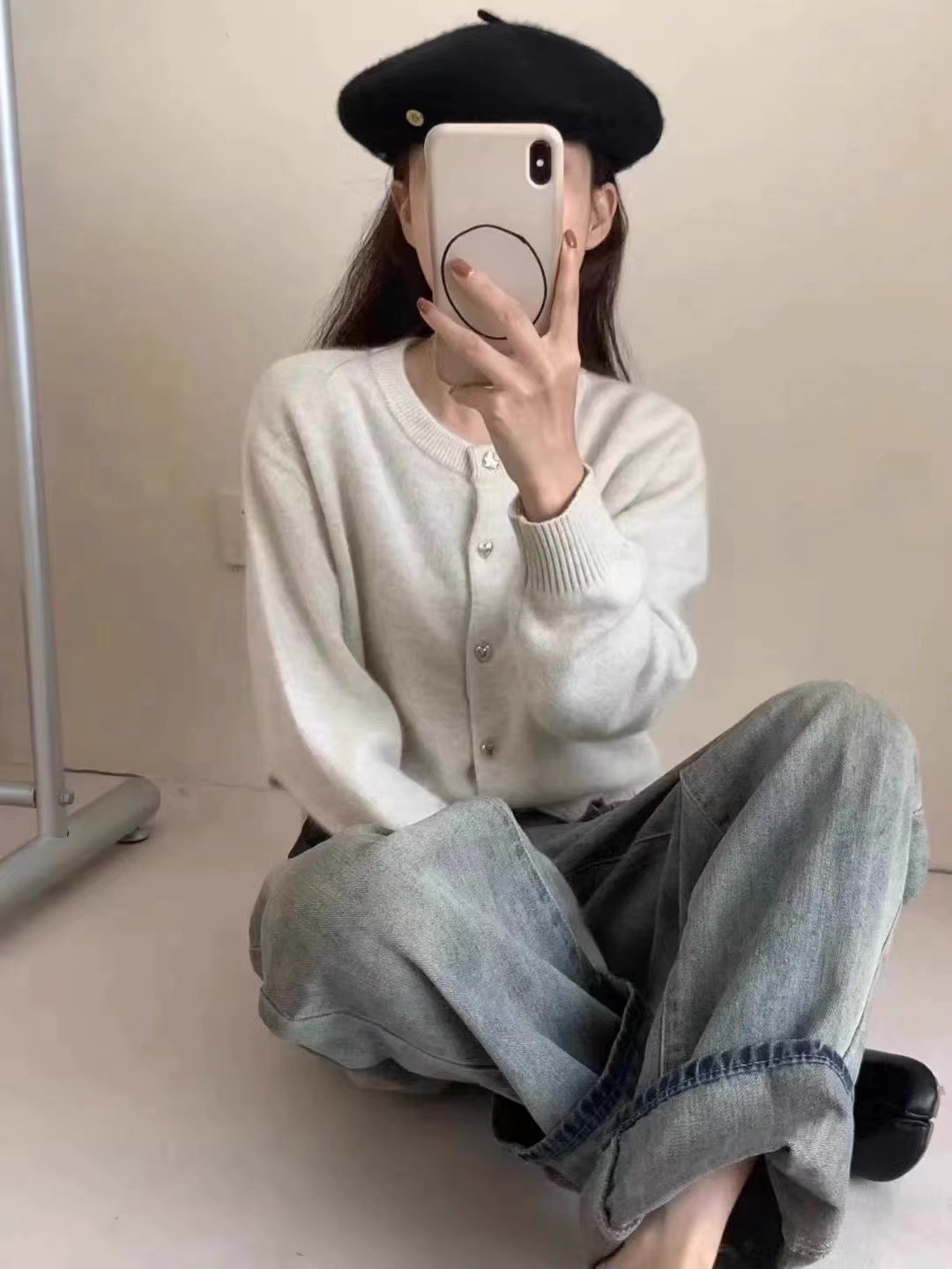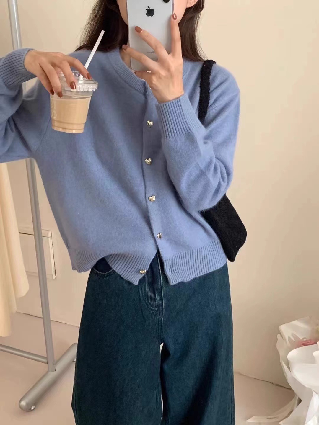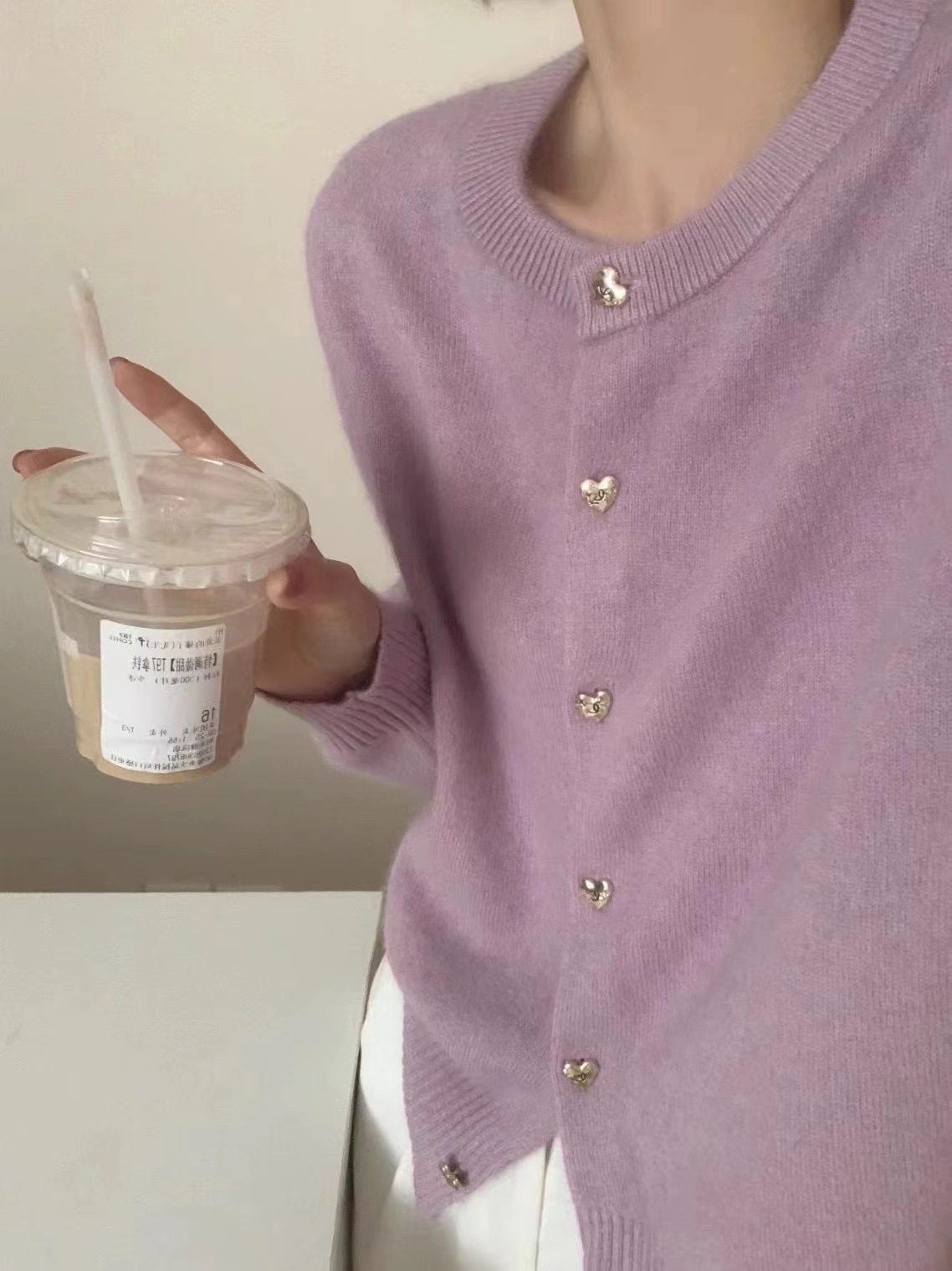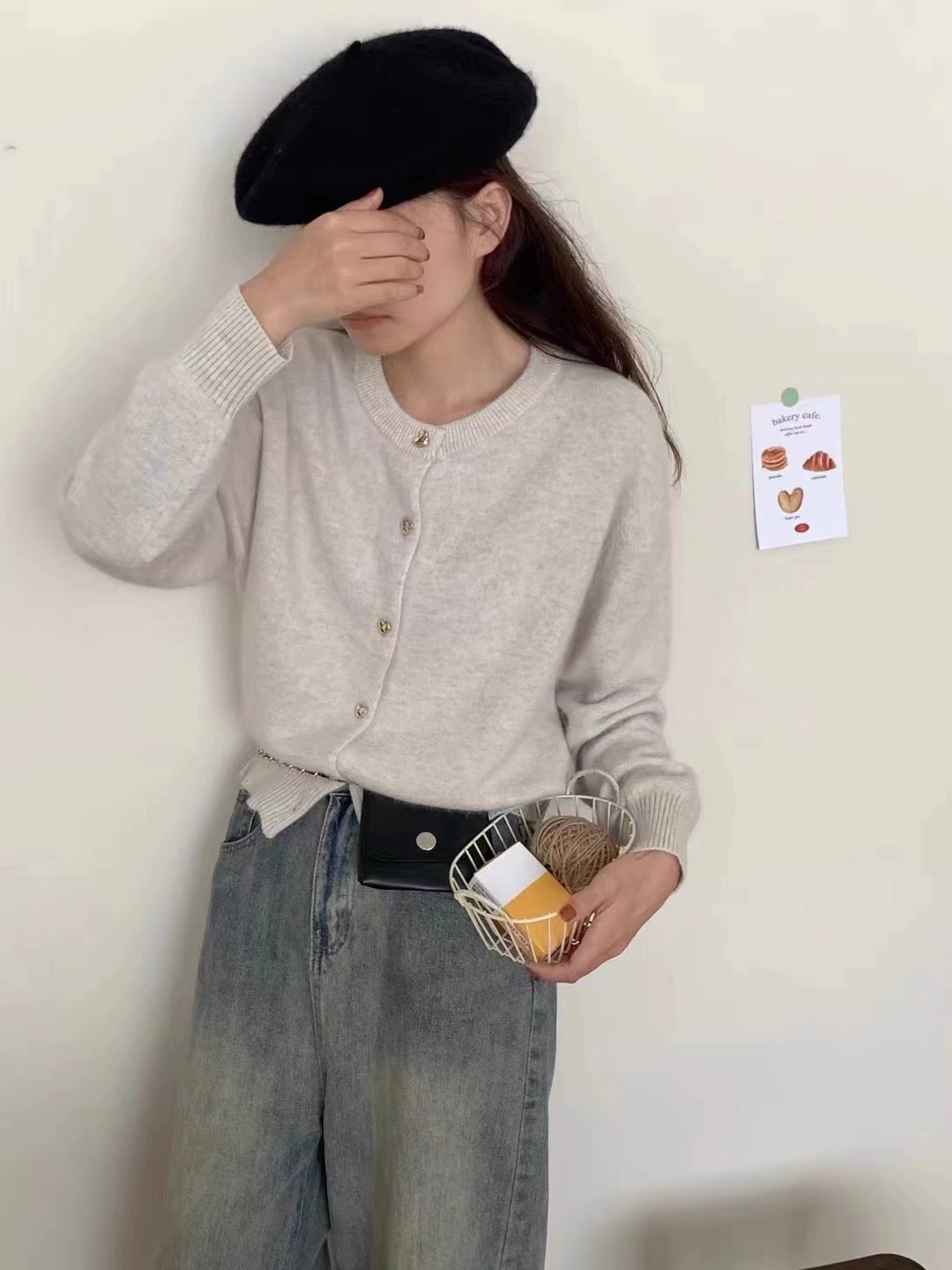 프렌치 봄, 가을 100 울 카디건 여성용 짧은 핑크 스웨터 루즈 탑 캐시미어 스웨터 재킷스토어 가기