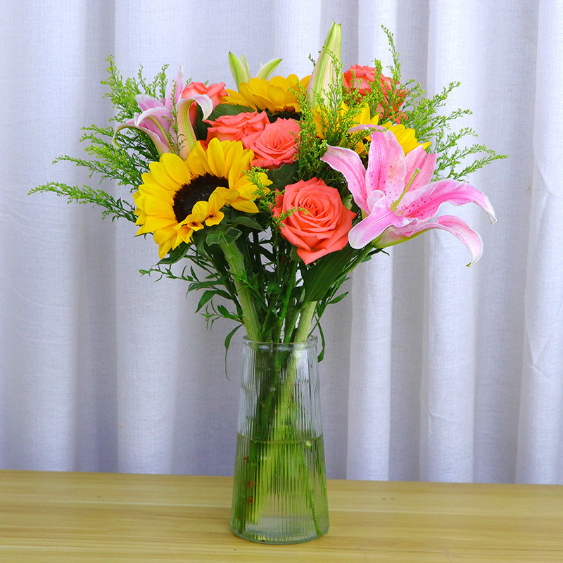 • 장미 5개 + 백합 5개 + 해바라기 3개 + 풀