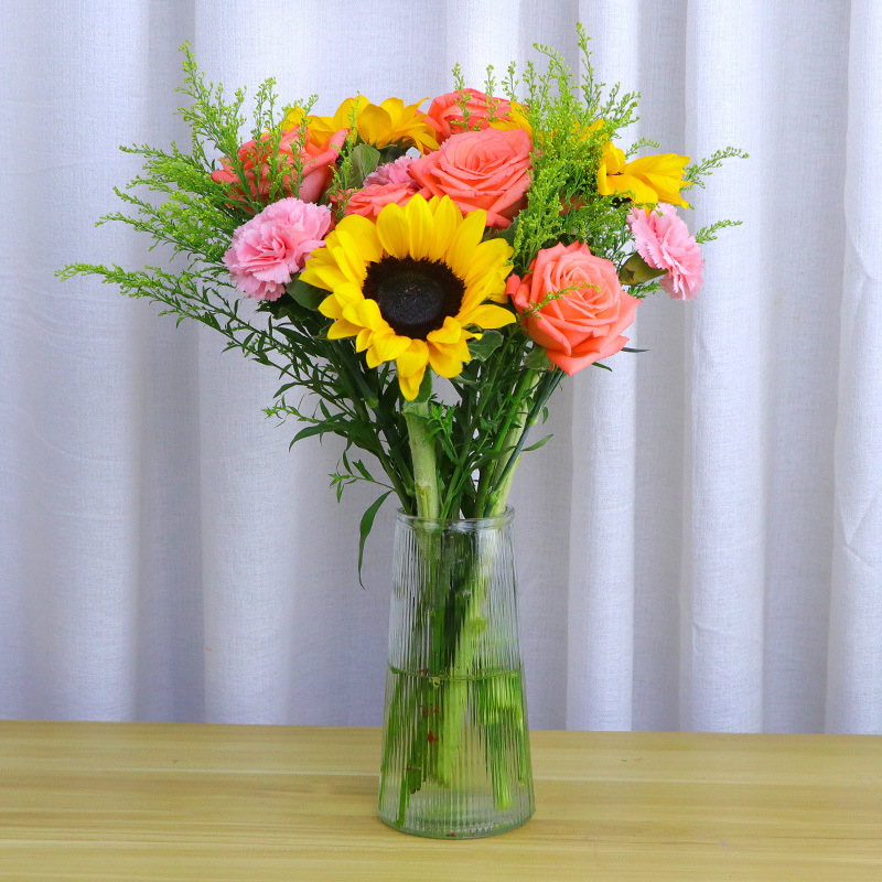 • 장미 5개 + 카네이션 5개 + 해바라기 3개 + 풀