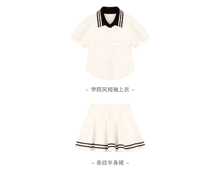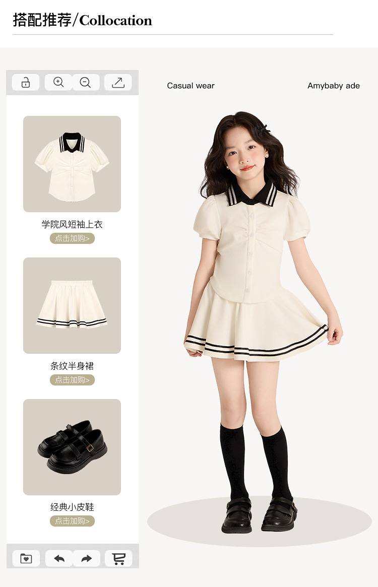 Amybaby Girls 세트 여름 2025 새로운 대비 색상 슬리밍 허리 짧은 소매 톱 스트라이프 스커트스토어 가기