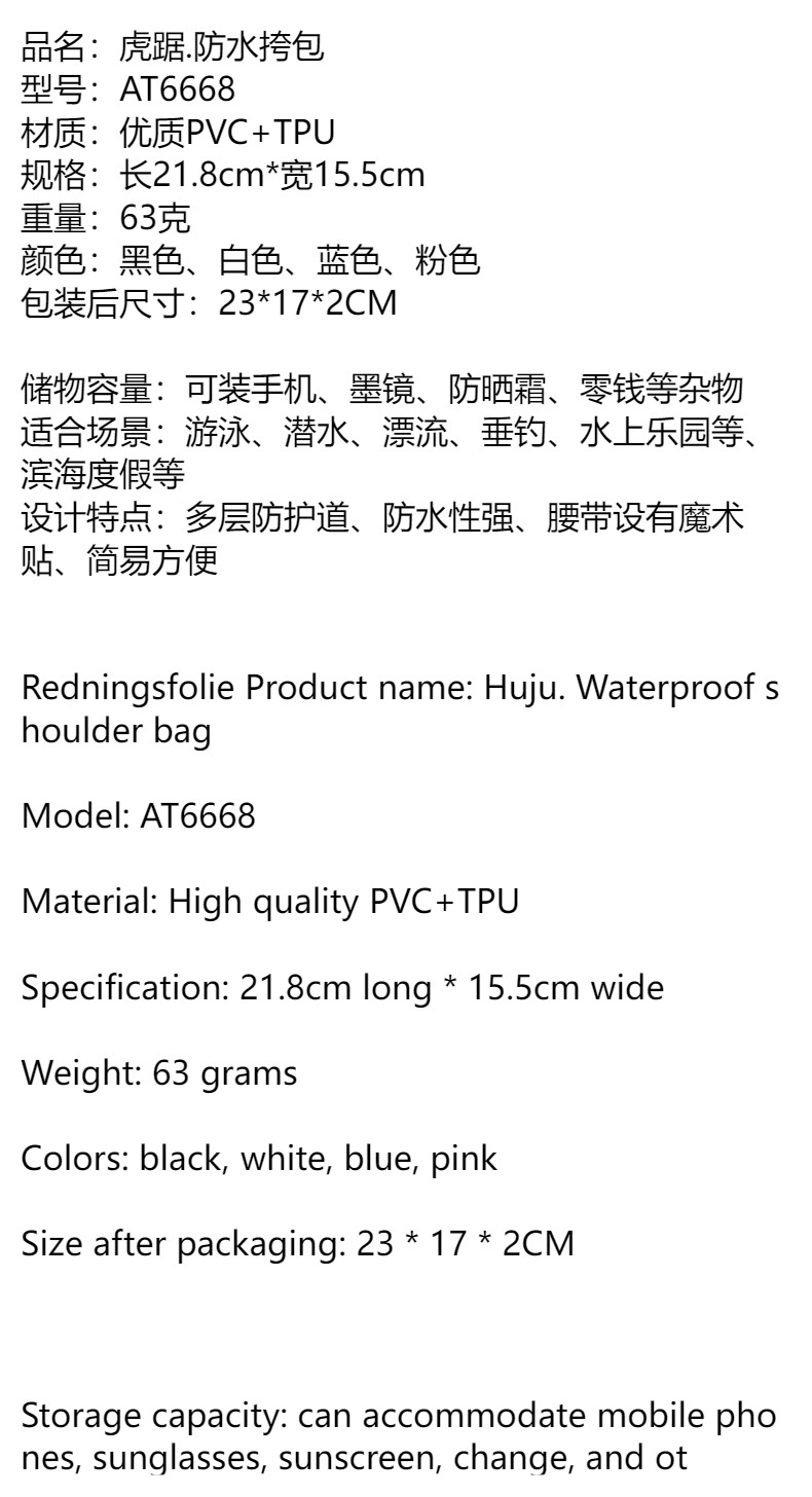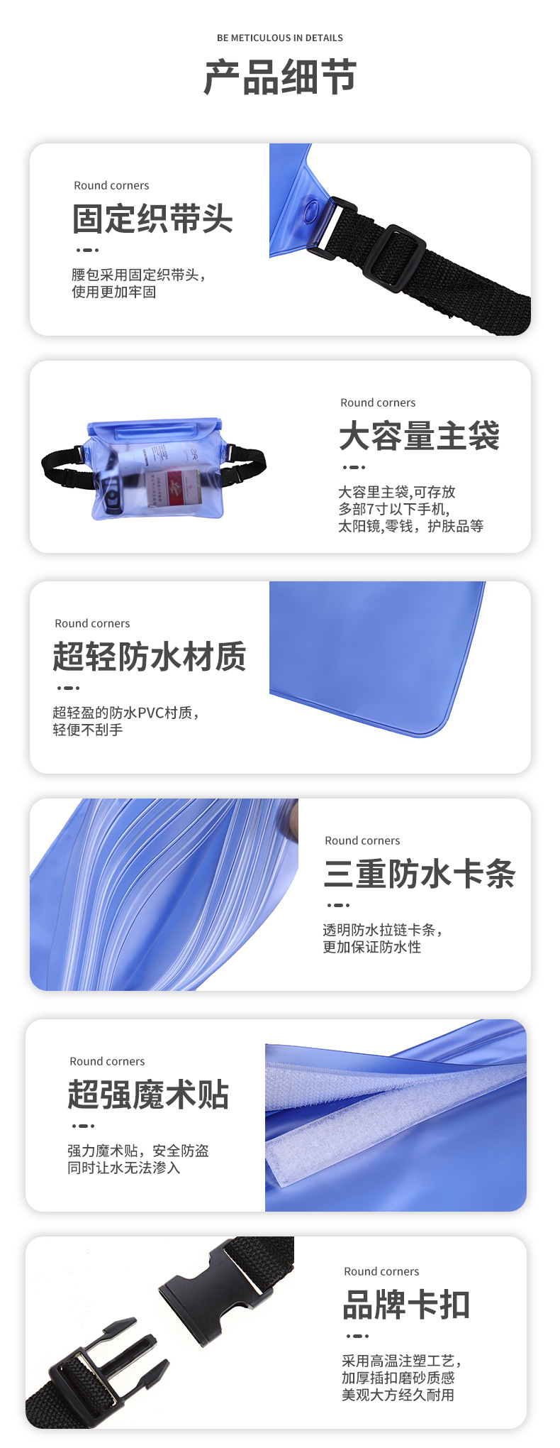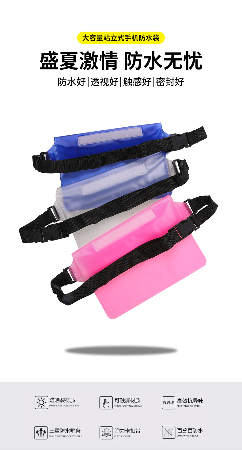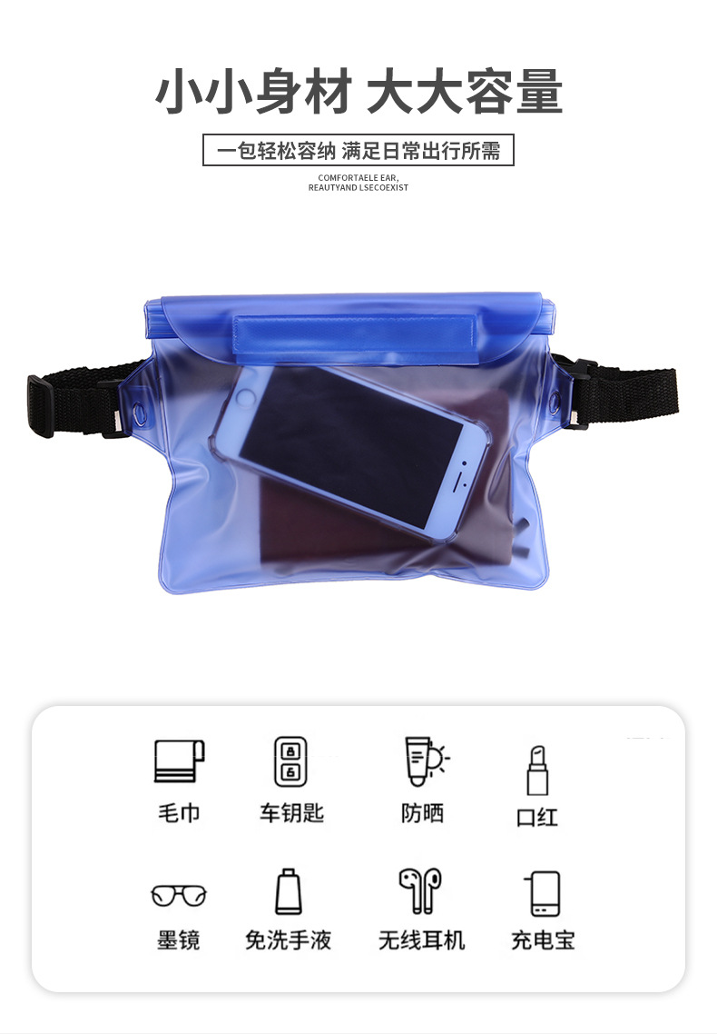 표류 해변 수영 PVC 휴대 전화 방수 가방 테이크 아웃 여행 대형 투명 야외 방수 허리 가방 휴대 전화 가방