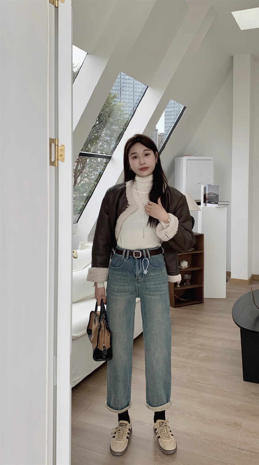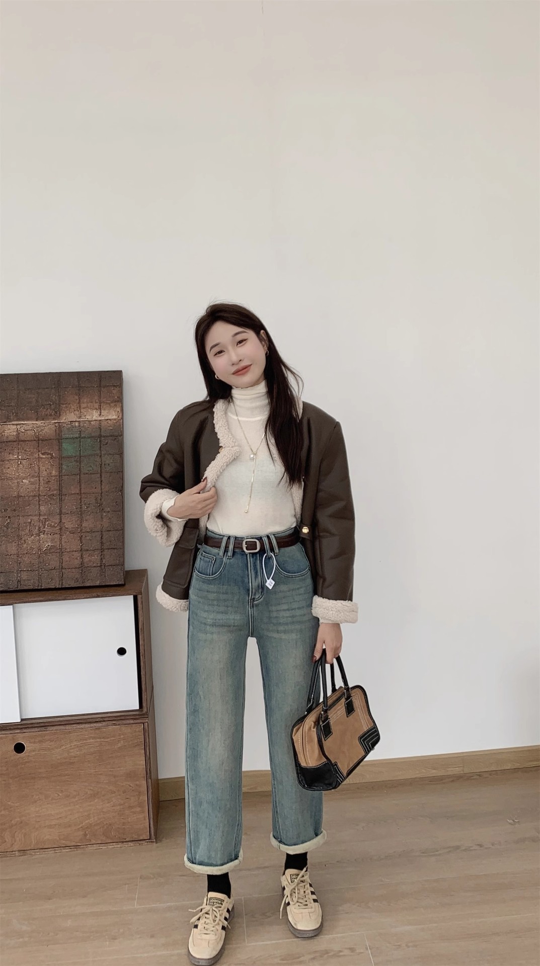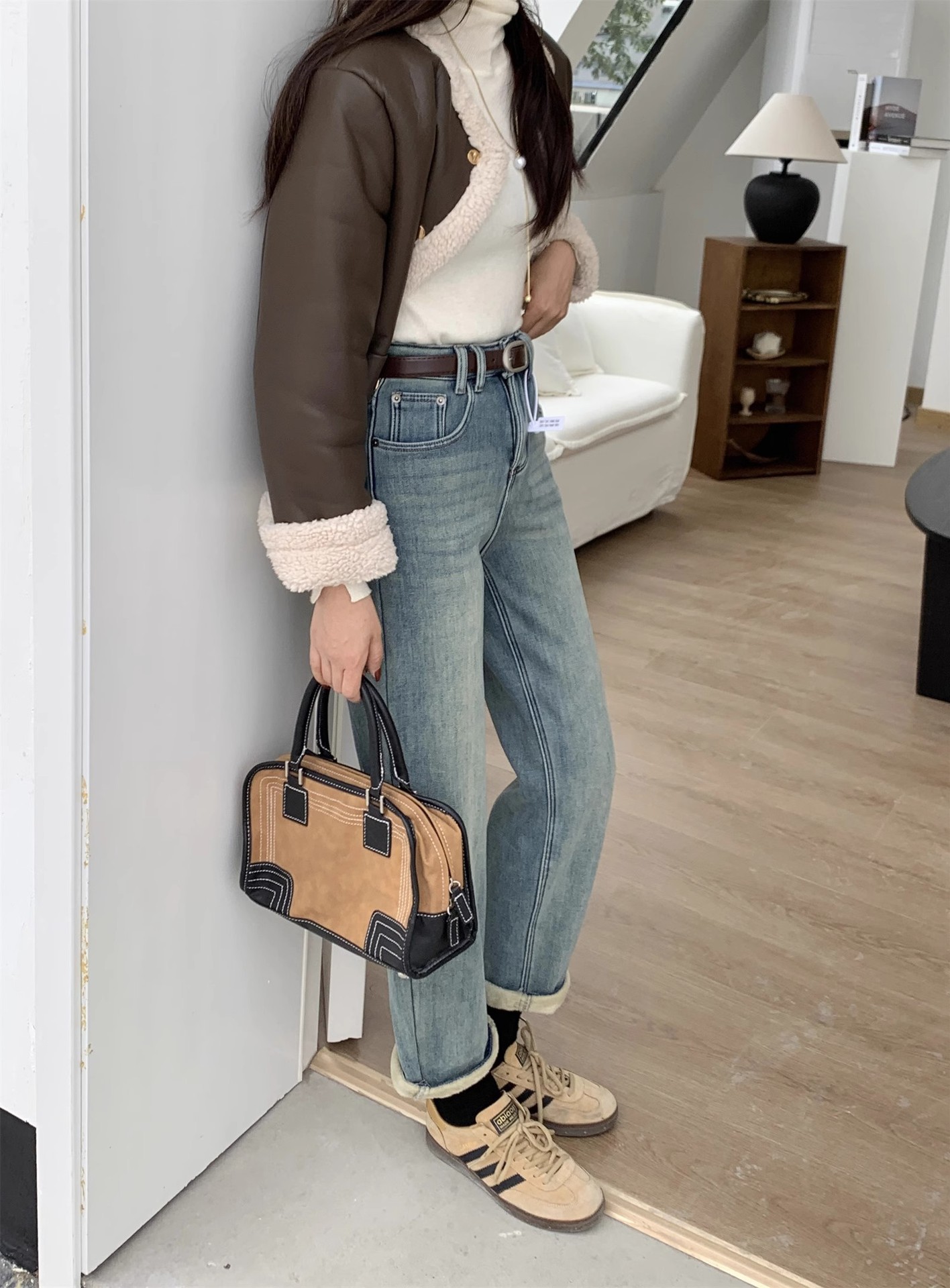 안티 시즌 라이트 기모 두꺼운 청바지 여자 2024 겨울 높은 허리 스트레치 할란 무 데님 남자 친구 바지스토어 가기