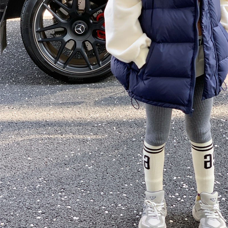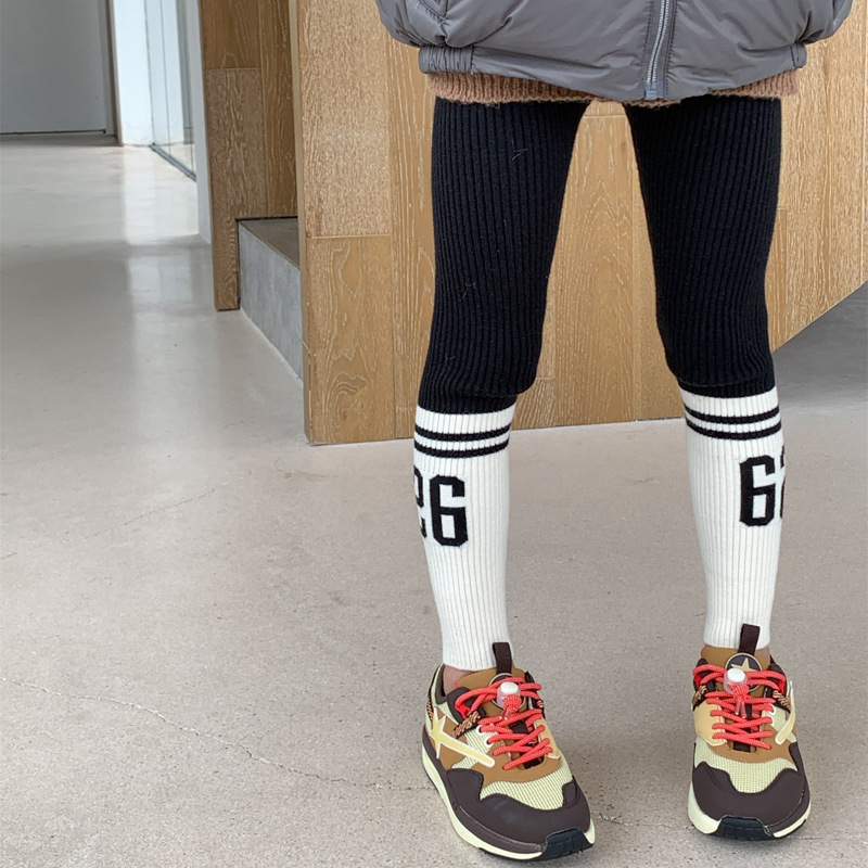 여자 레깅스 2025 봄 아우터웨어 한국식 어린이 바지 높은 탄성 니트 바지 아기 올매치 울 바지