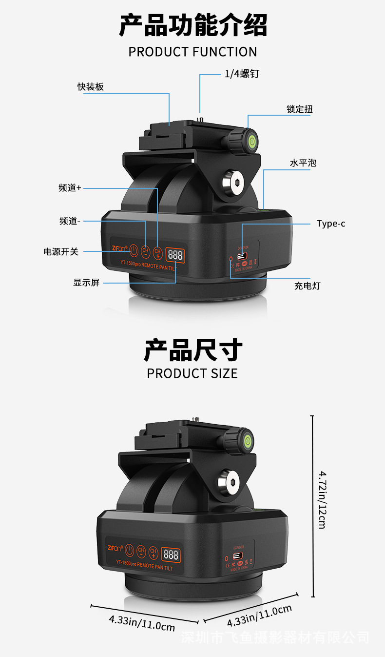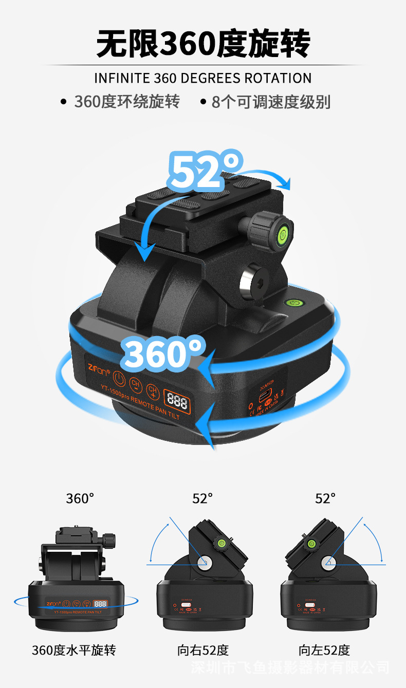 ZIFON 휴대 전화 팬 틸트 파노라마 후속 팬 틸트 360 전기 팬 틸트 데스크탑 휴대 전화 안정기 YT-1500pro