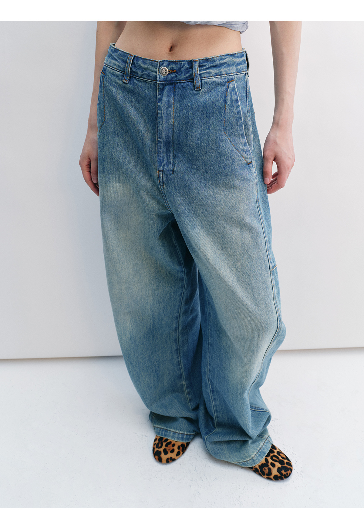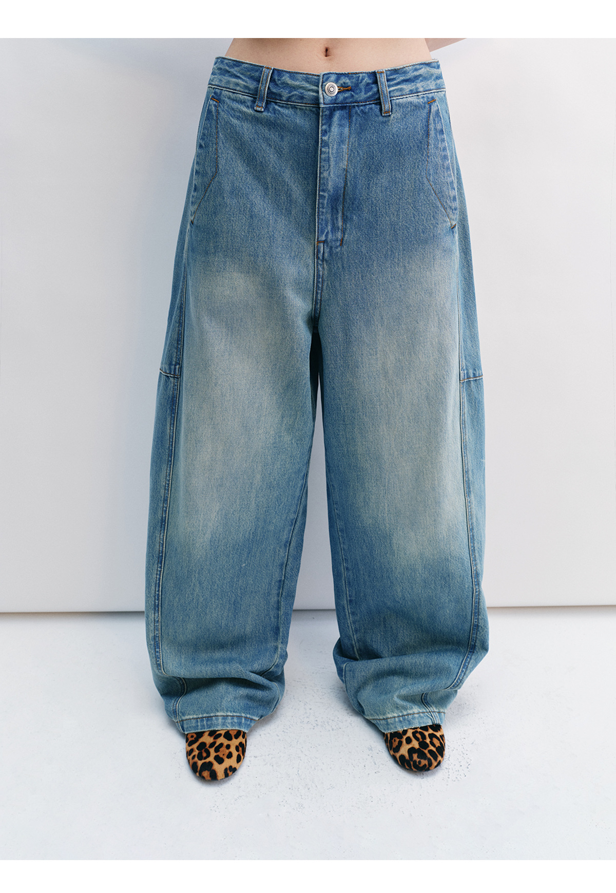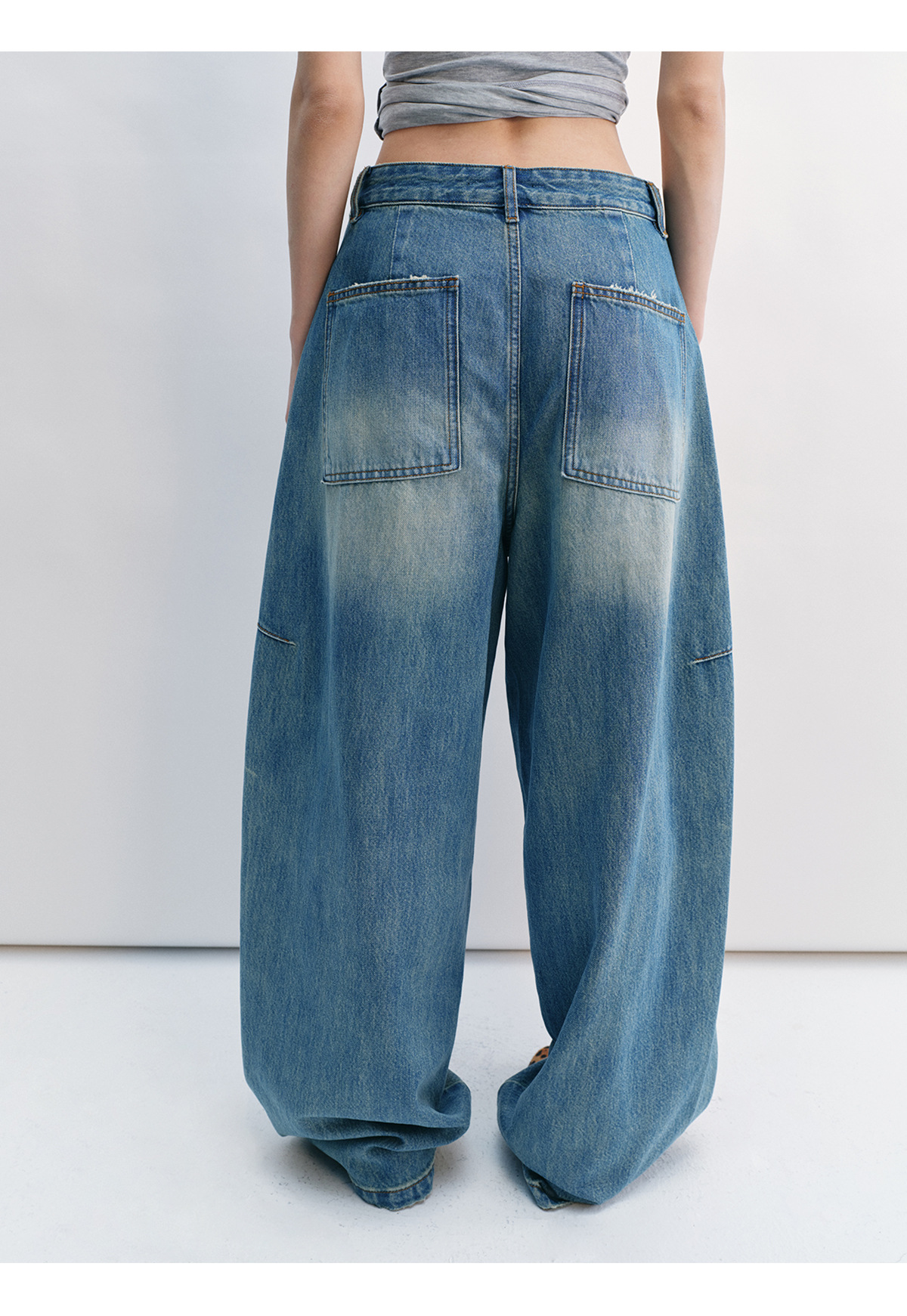 [시간] 새로운 업그레이드 바나나 모양의 순면 경량 바지 세척 물 느슨한 조커 청바지 여성 V8753